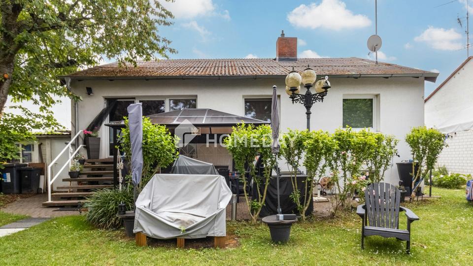 In einer ruhigen Seitenstraße von Harxheim, einer idyllischen Weinbaugemeinde im Herzen von Rheinhessen, befindet sich dieses gepflegte Einfamilienhaus in Massivbauweise. Das freistehende Haus wurde im Jahr 1968 errichtet und über die Jahre liebevoll instand gehalten sowie modernisiert. Auf einem ca. 533 Quadratmeter großen Grundstück mit sonnigem Vorgarten, großer Terrasse, altem Baumbestand und einem gemütlichen Gartenpavillon erwartet Sie ein Zuhause mit viel Charme und Platz für die ganze Familie.