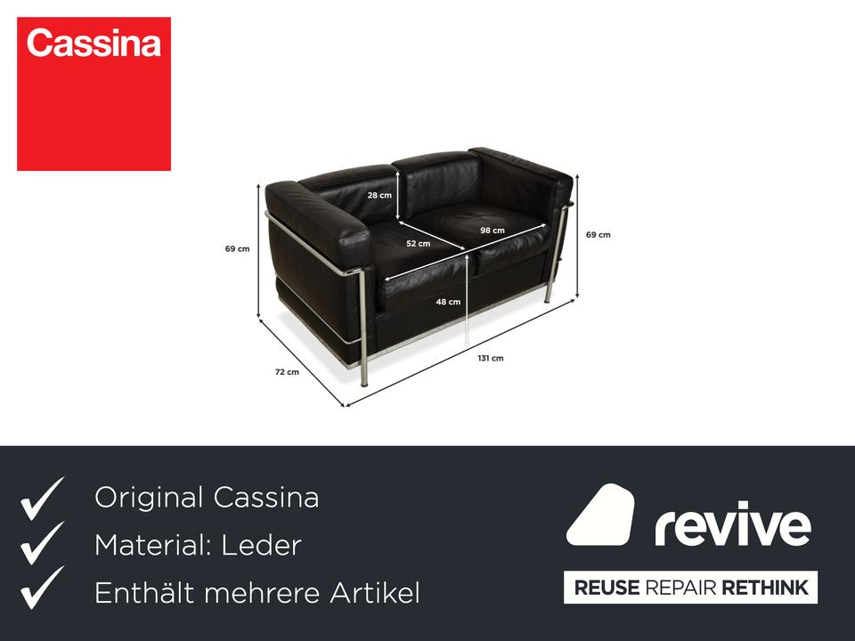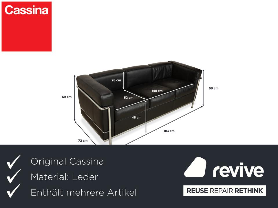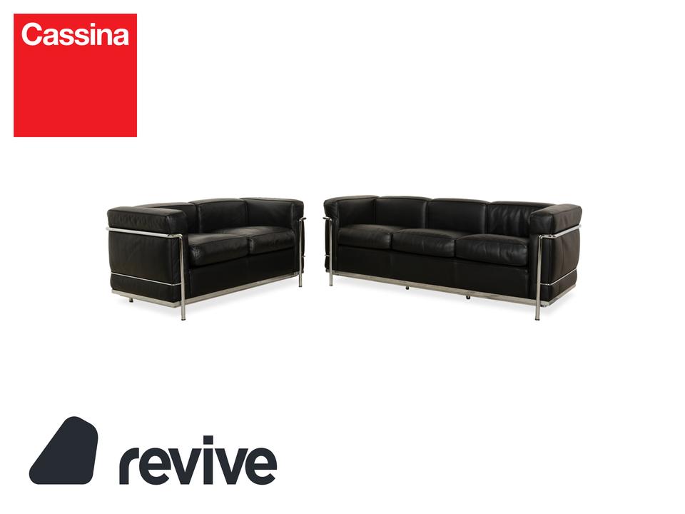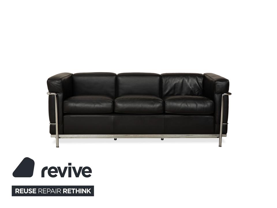 Cassina LC 2 Leder Dreisitzer Zweisitzer Schwarz Sofa Le