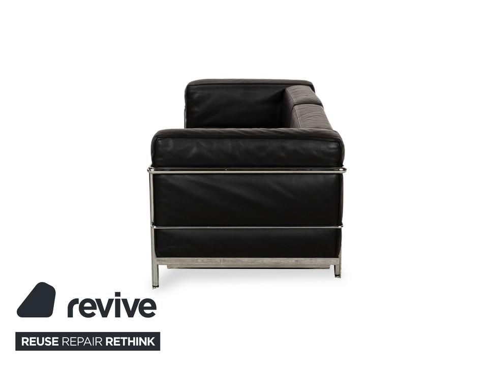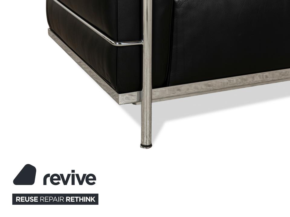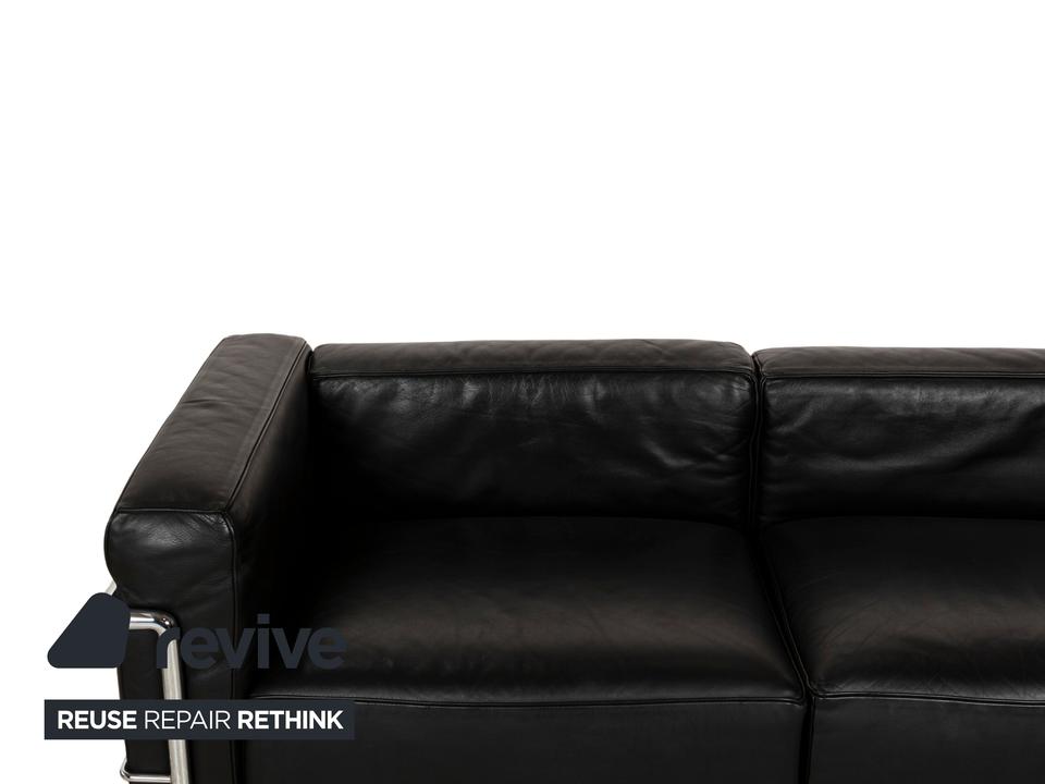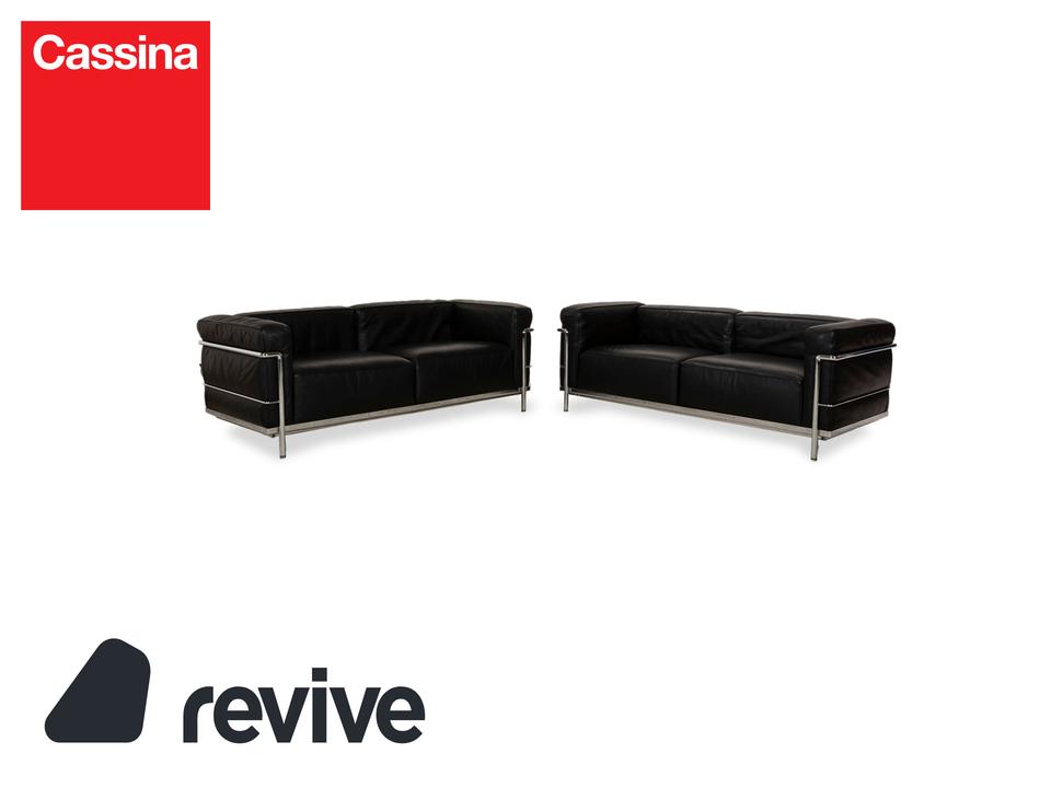 Diese Sofa-Garnitur, bestehend aus zwei baugleichen LC 3 von Le Cassina, ist ein wahres Highlight im modernen Wohnzimmer. Der Zweisitzer Le Corbusier LC3 von Cassina ist mit einem schwarzen Echtleder bezogen und steht auf silbernen Metallfüßen. Er zeichnet sich durch das kompakte, massive Design und die stilvolle Optik aus.