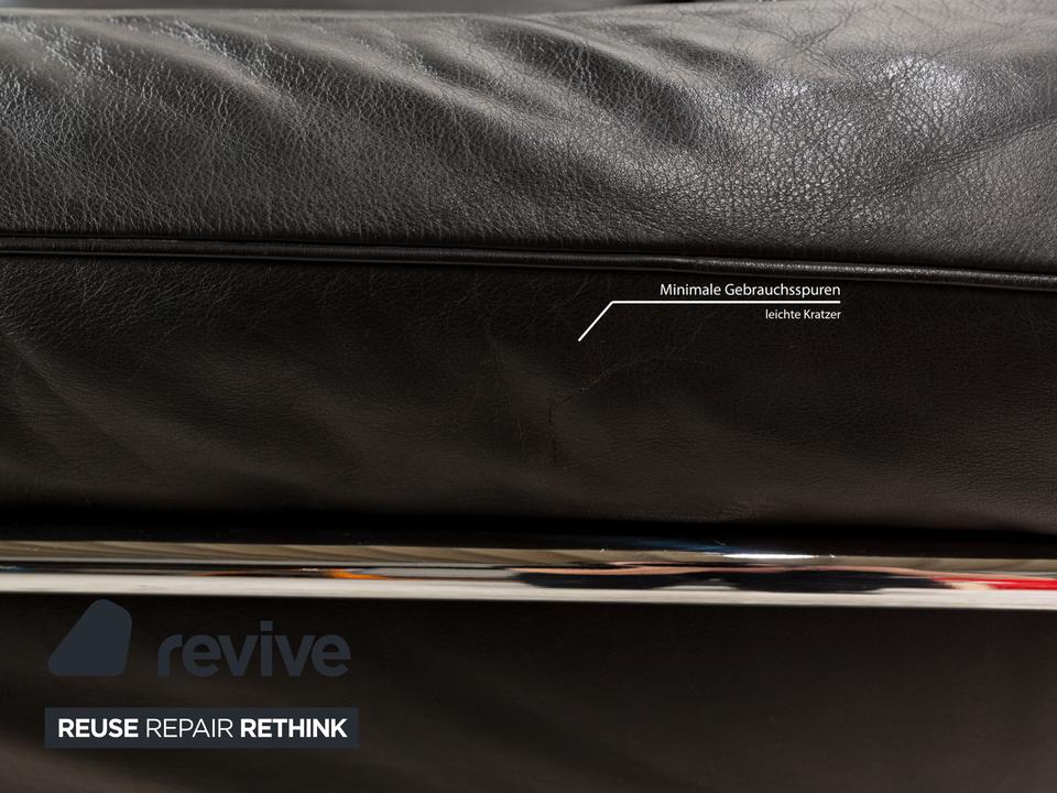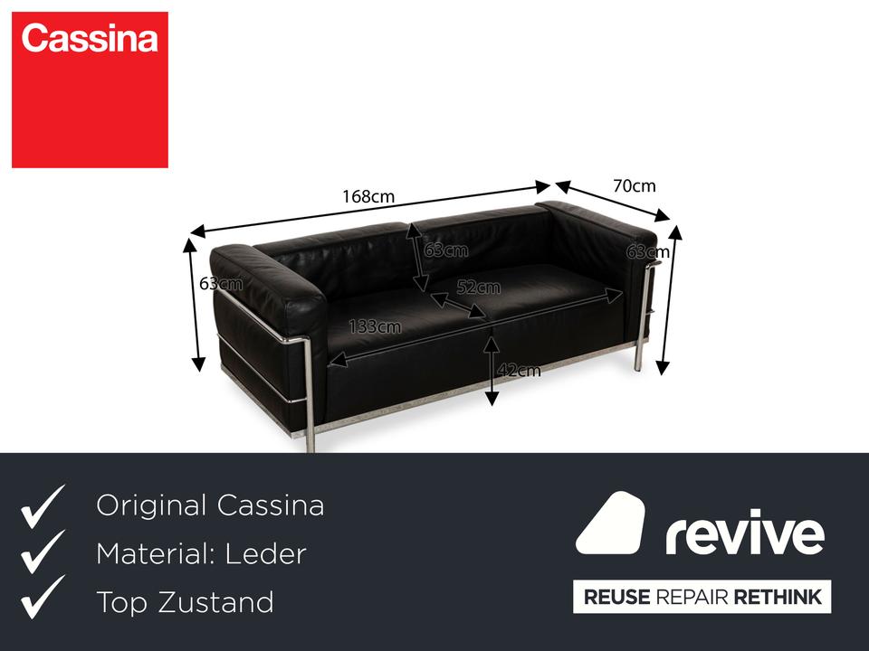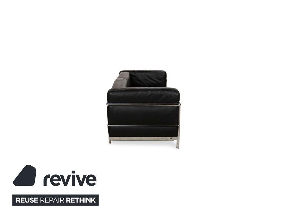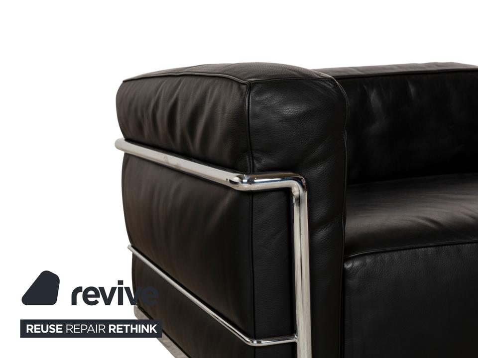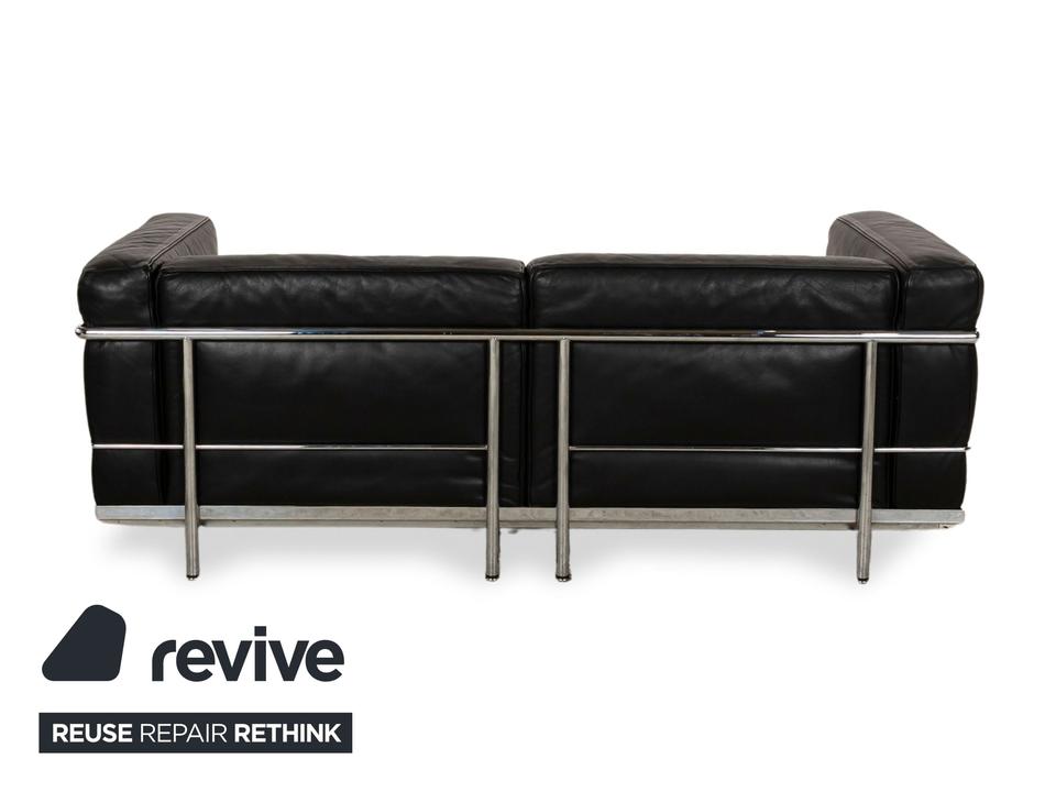 Diese Sofa-Garnitur, bestehend aus zwei baugleichen LC 3 von Le Cassina, ist ein wahres Highlight im modernen Wohnzimmer. Der Zweisitzer Le Corbusier LC3 von Cassina ist mit einem schwarzen Echtleder bezogen und steht auf silbernen Metallfüßen. Er zeichnet sich durch das kompakte, massive Design und die stilvolle Optik aus.
