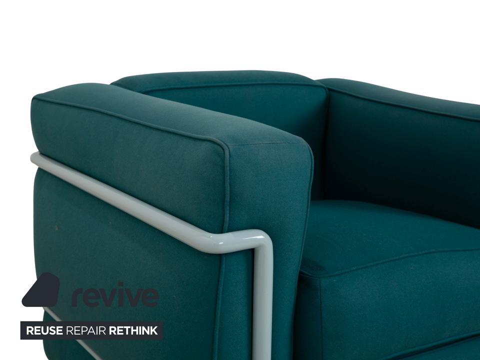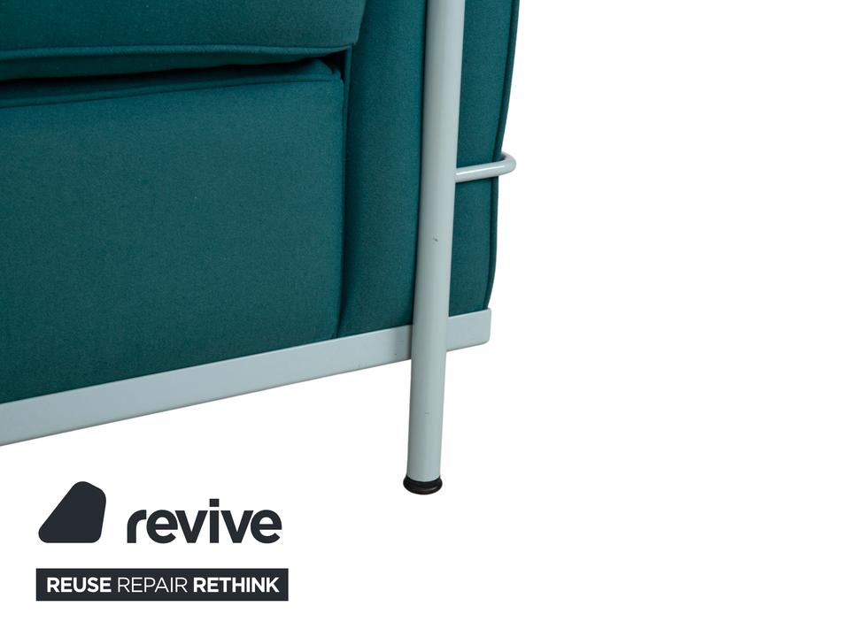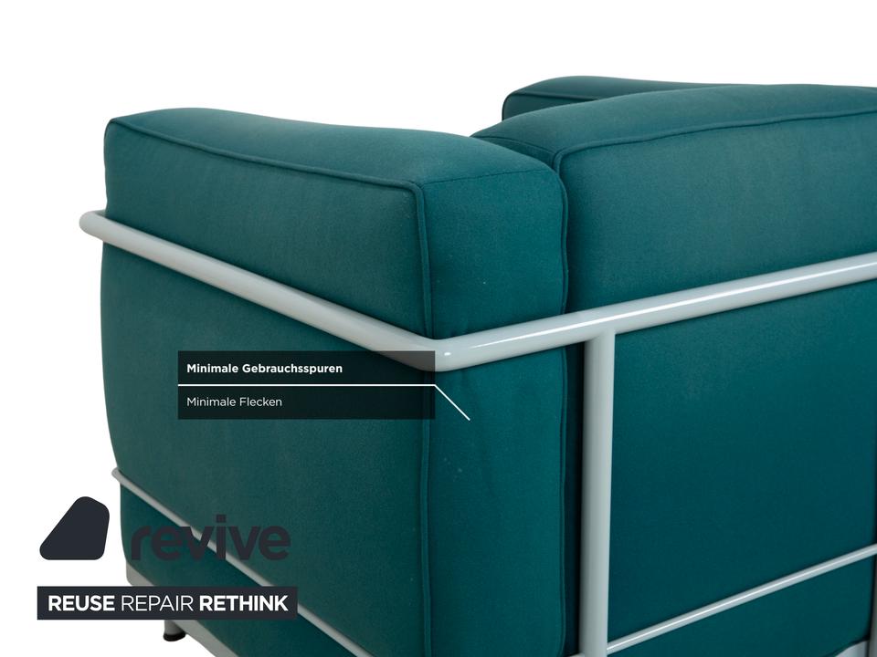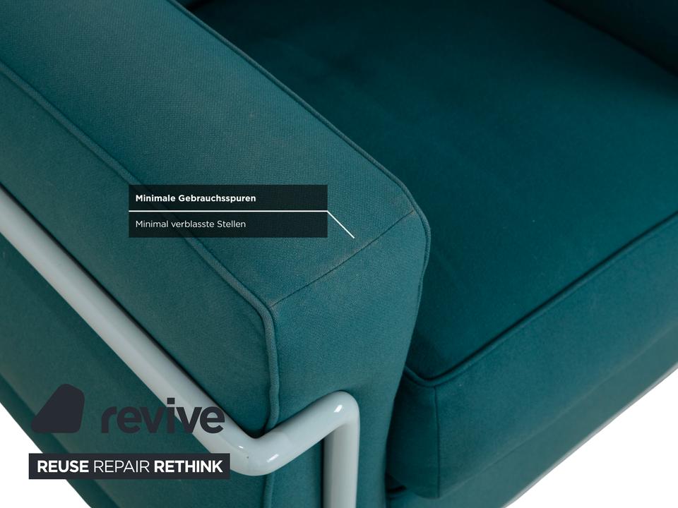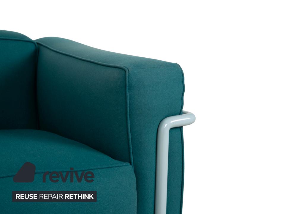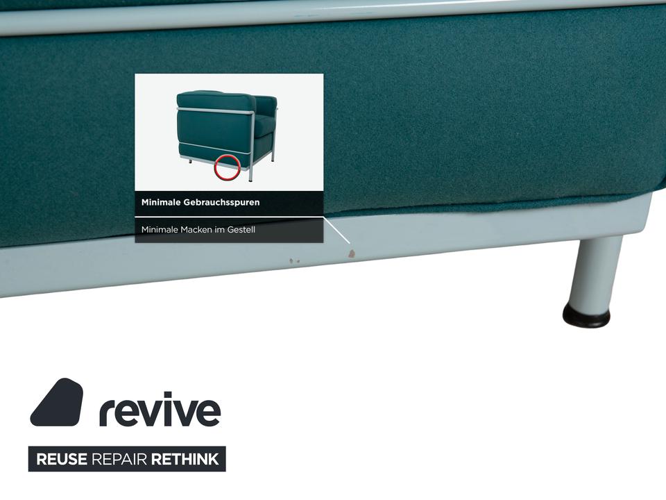 Mit diesem Sessel holst du dir den absoluten Design-Olymp in einer überraschend frischen Variante ins Haus. Der LC 2 von Cassina (entworfen von Le Corbusier, Pierre Jeanneret und Charlotte Perriand) ist weltberühmt für sein strenges, kubisches Stahlrohrgestell. Doch statt des klassischen schwarzen Leders trägt dieses Modell einen Stoffbezug in einem tiefen Blau-Petrol-Ton.Das ändert den Charakter des Möbels komplett: Die Farbe nimmt dem strengen „Käfig“-Design die kühle Härte und verleiht dem Sessel eine weichere, wohnlichere Note, ohne die architektonische Klarheit zu verwässern. Das lackierte Gestell (oft in einer passenden oder neutralen Farbe) rahmt die Polster perfekt ein. Du sitzt hier tief und bequem im legendären „Grand Confort“, aber mit einem modernen Twist, der zeigt, dass Designklassiker auch Farbe vertragen können. Ein Statement-Piece für Individualisten.