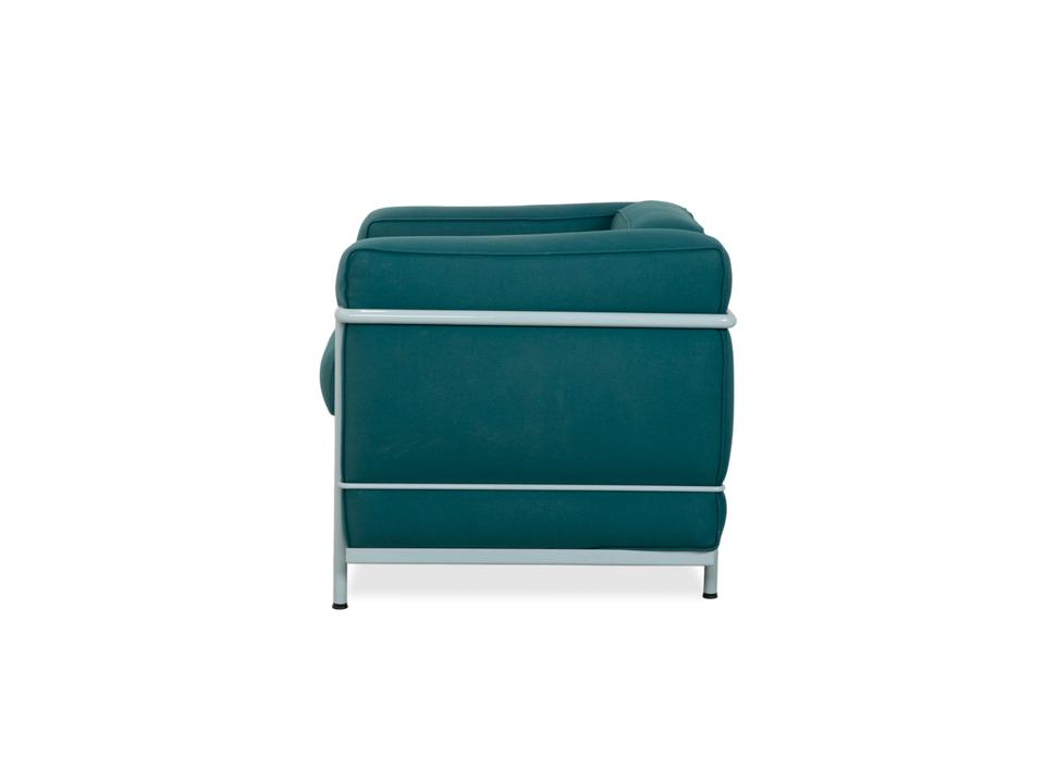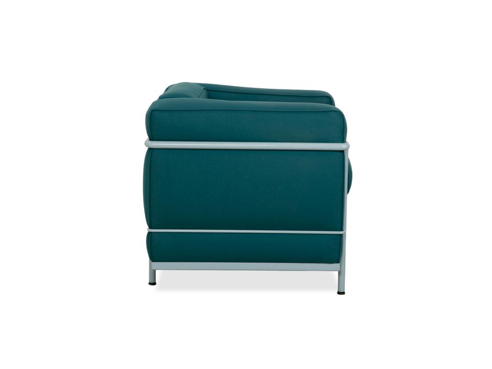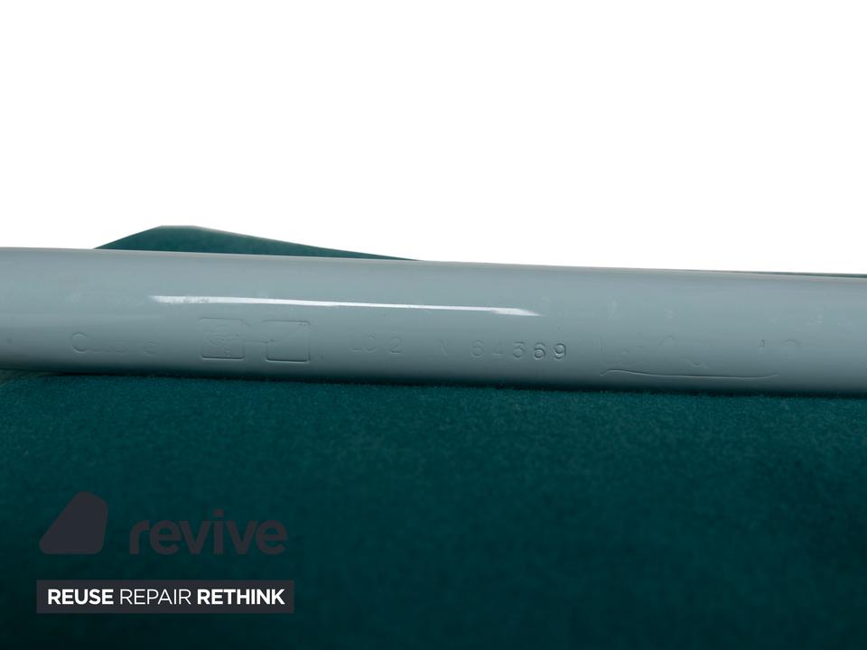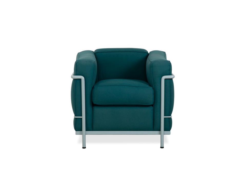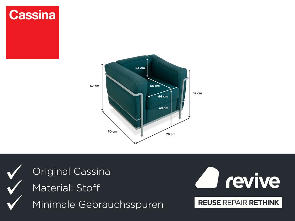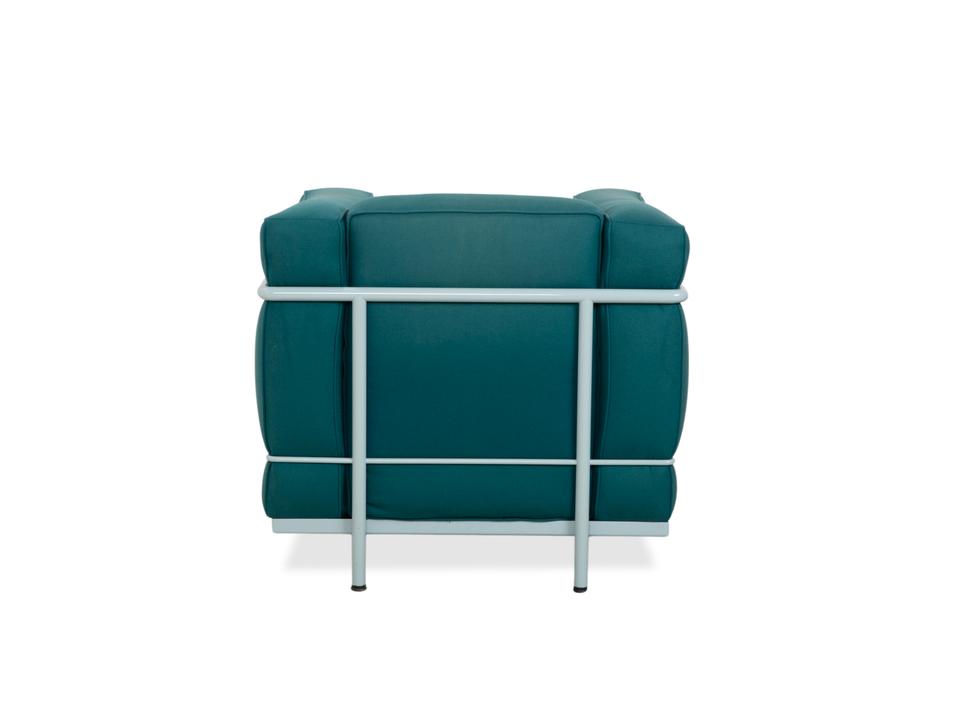 Mit diesem Sessel holst du dir den absoluten Design-Olymp in einer überraschend frischen Variante ins Haus. Der LC 2 von Cassina (entworfen von Le Corbusier, Pierre Jeanneret und Charlotte Perriand) ist weltberühmt für sein strenges, kubisches Stahlrohrgestell. Doch statt des klassischen schwarzen Leders trägt dieses Modell einen Stoffbezug in einem tiefen Blau-Petrol-Ton.Das ändert den Charakter des Möbels komplett: Die Farbe nimmt dem strengen „Käfig“-Design die kühle Härte und verleiht dem Sessel eine weichere, wohnlichere Note, ohne die architektonische Klarheit zu verwässern. Das lackierte Gestell (oft in einer passenden oder neutralen Farbe) rahmt die Polster perfekt ein. Du sitzt hier tief und bequem im legendären „Grand Confort“, aber mit einem modernen Twist, der zeigt, dass Designklassiker auch Farbe vertragen können. Ein Statement-Piece für Individualisten.