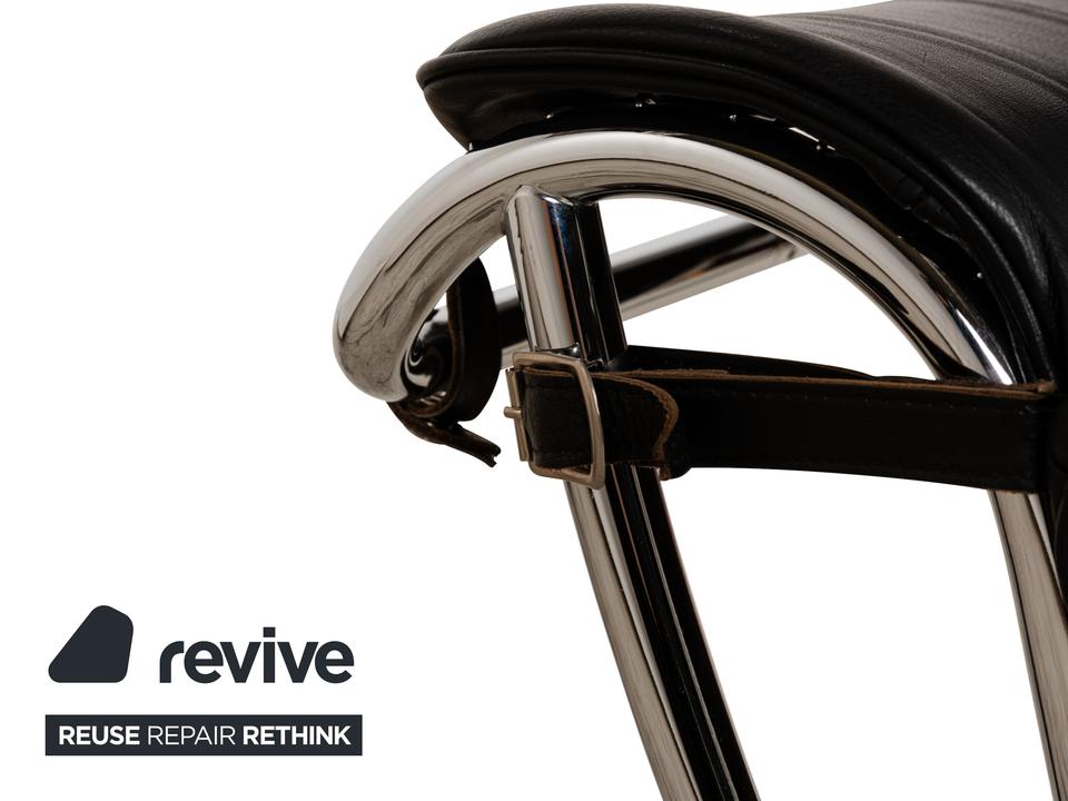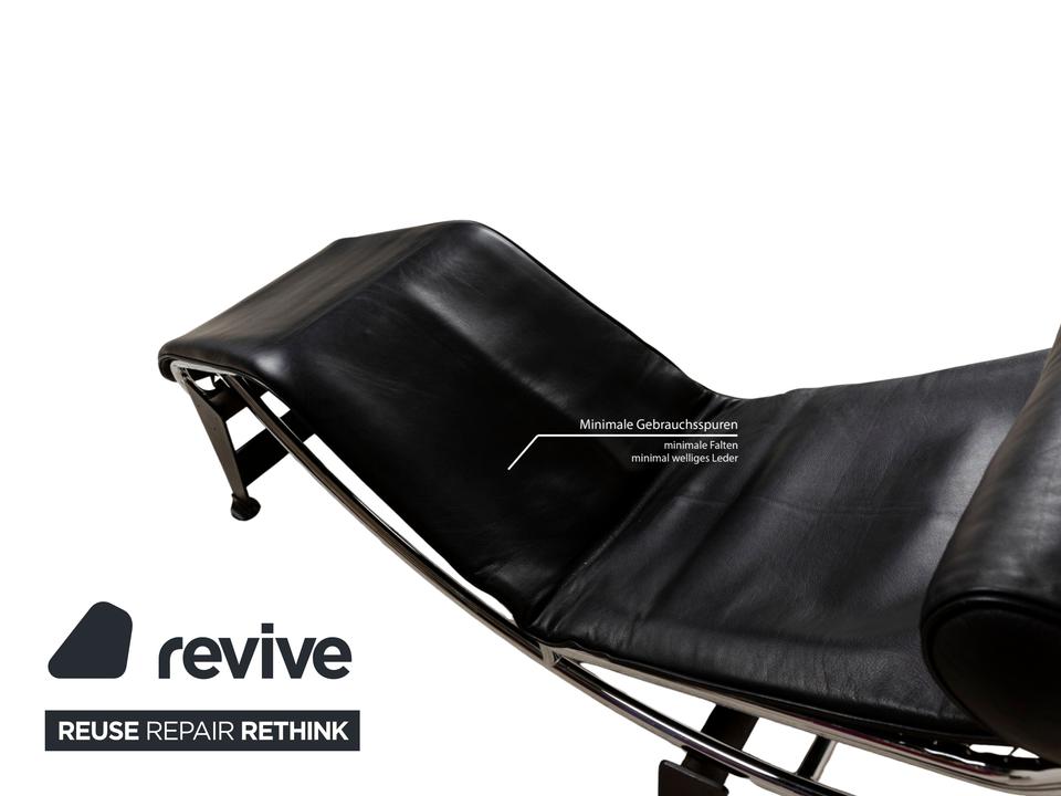 Die LC 4 Liege ist Designklassiker, Ikone und die ultimative Chaiselongue: die Form verspricht Entspannung pur. Der Designer Le Corbusier erreichte das perfekte Gleichgewicht zwischen geometrischer Schlichtheit und ergonomischem Zweck. Die Relaxliege ist mit einem schwarzen Echtleder bezogen und lässt sich über die Kufen in eine Liegeposition schieben.