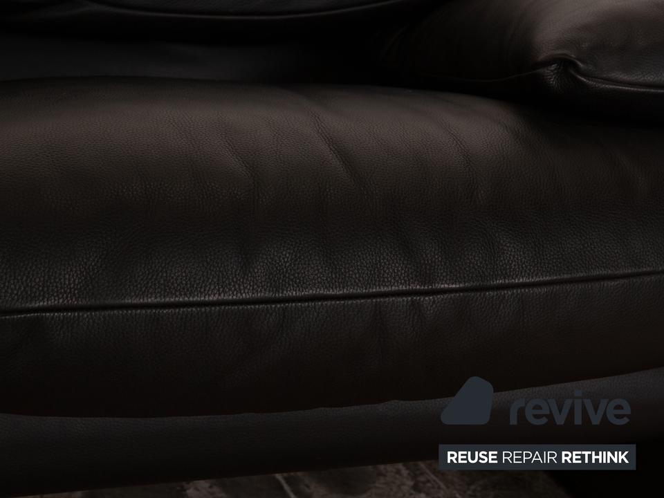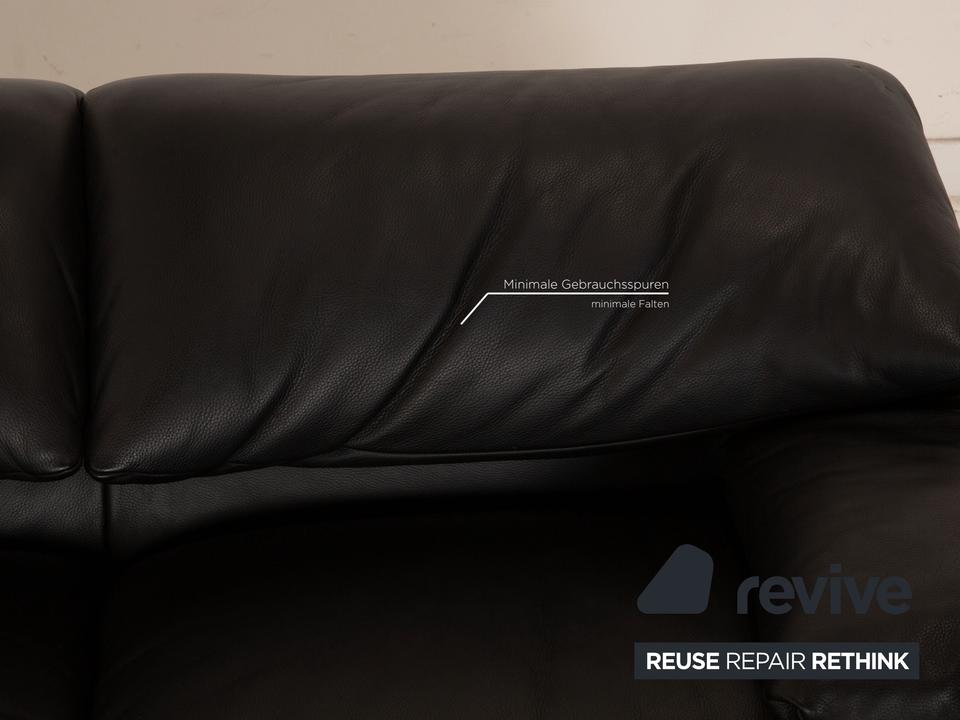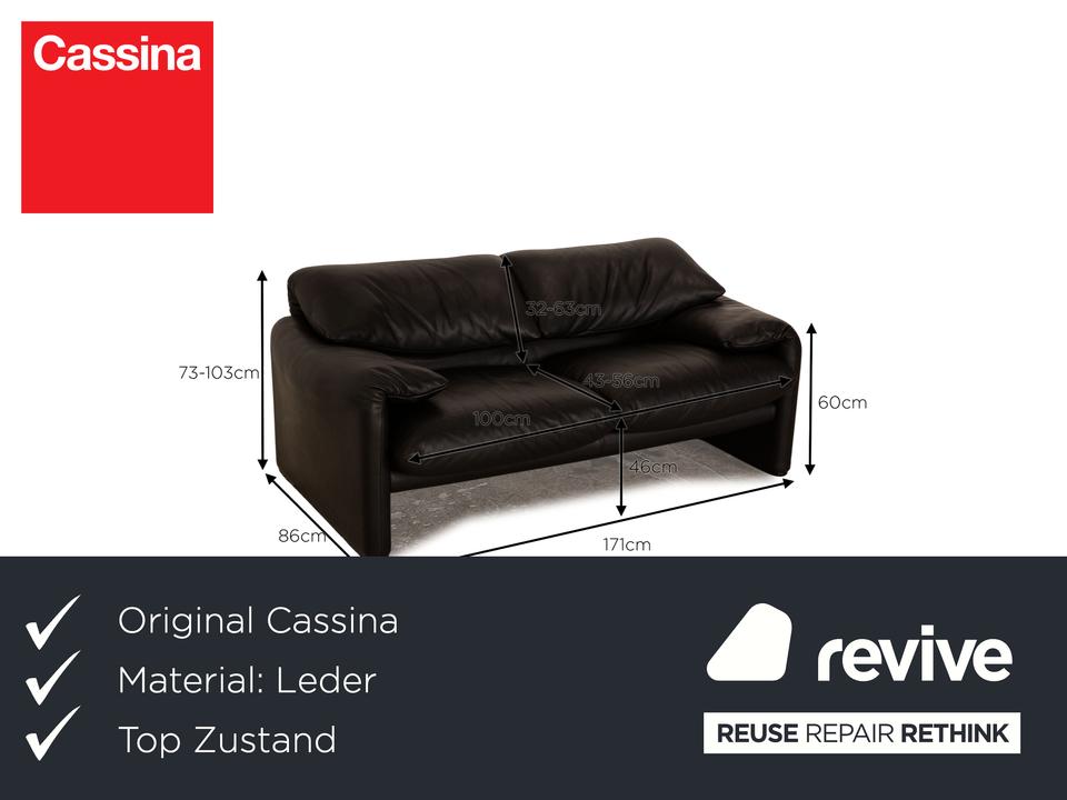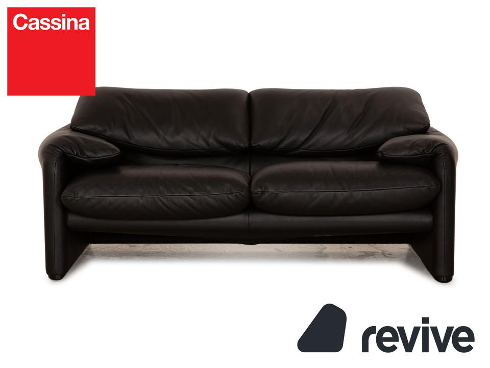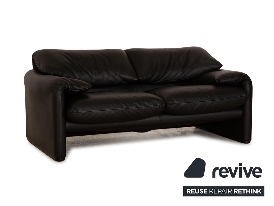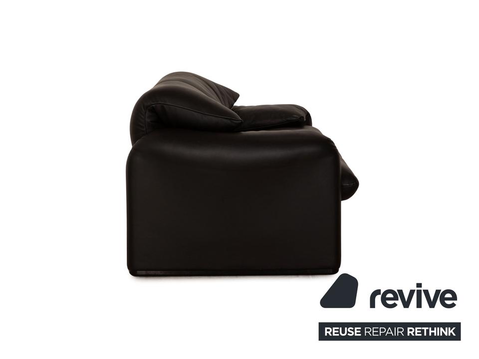 Das Maralunga Sofa von Cassina ist mit einem schwarzen Echtleder bezogen und steht auf bodentiefen Seitenteilen. Das klassische Design und die abgerundeten Kanten zeichnen den Zweisitzer aus.