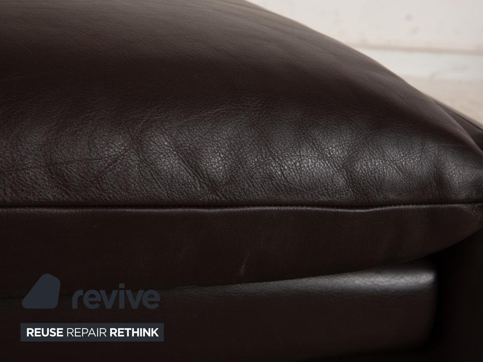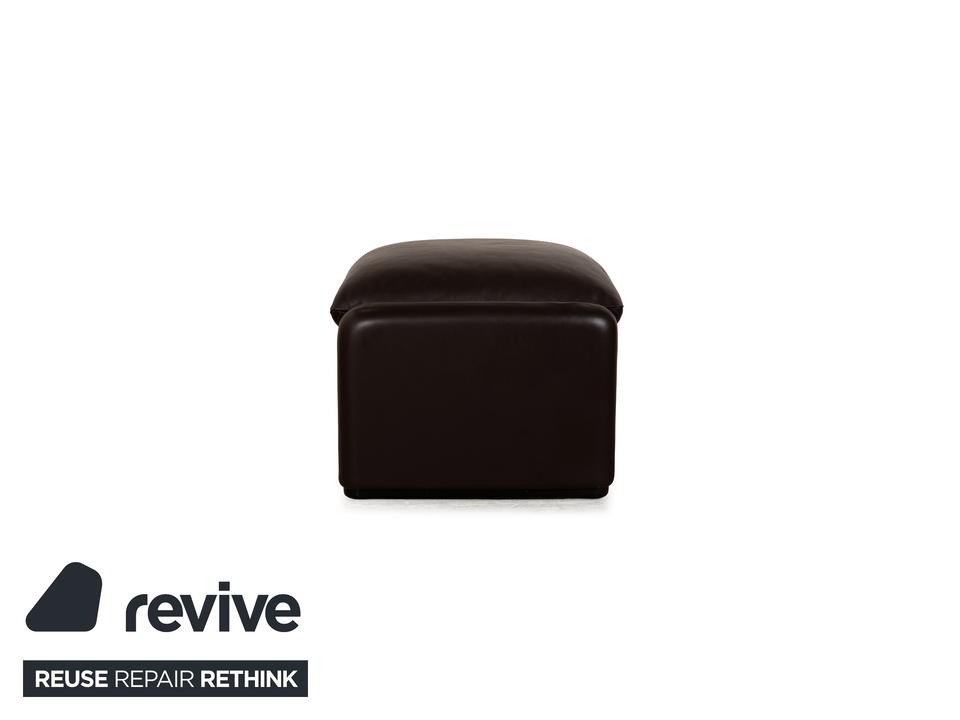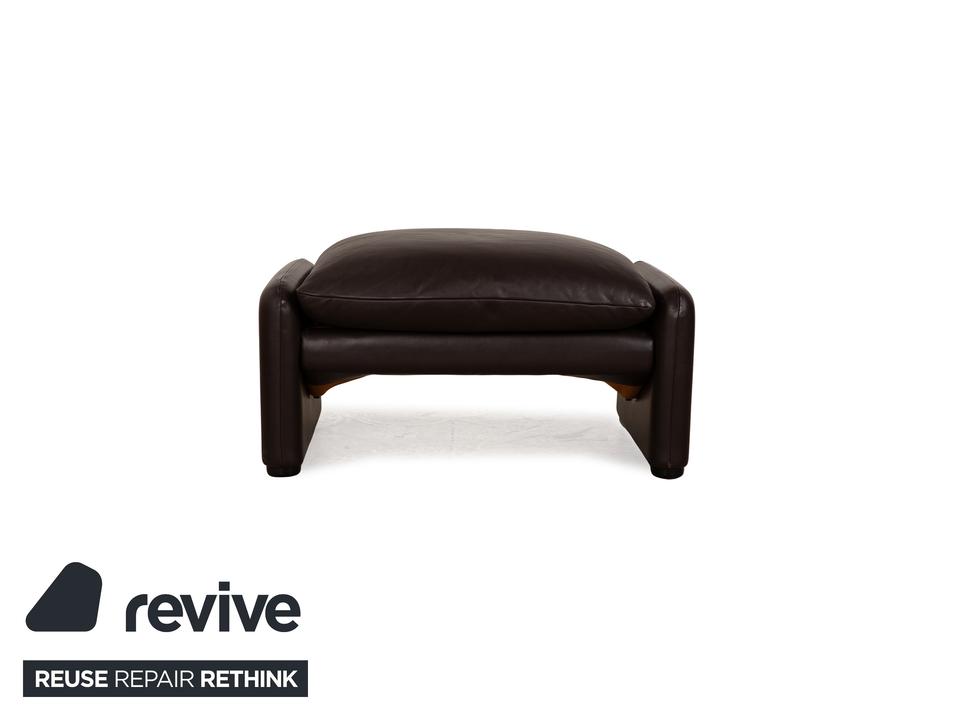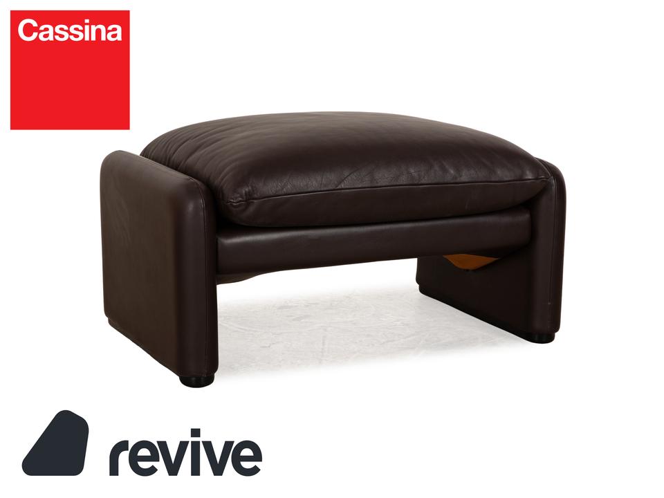 Der Maralunga Hocker von Cassina ist mit einem braunen Echtleder bezogen und steht auf bodentiefen Seitenteilen. Das klassische Design zeichnet ihn aus.