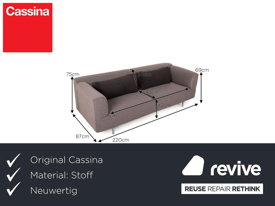 Das Met 250 Sofa von Cassina ist mit einem grauen Stoff neu bezogen und steht auf Metallfüßen. Das schlichte, zeitlose Design und die abgerundeten Kanten zeichnen den Dreisitzer aus.