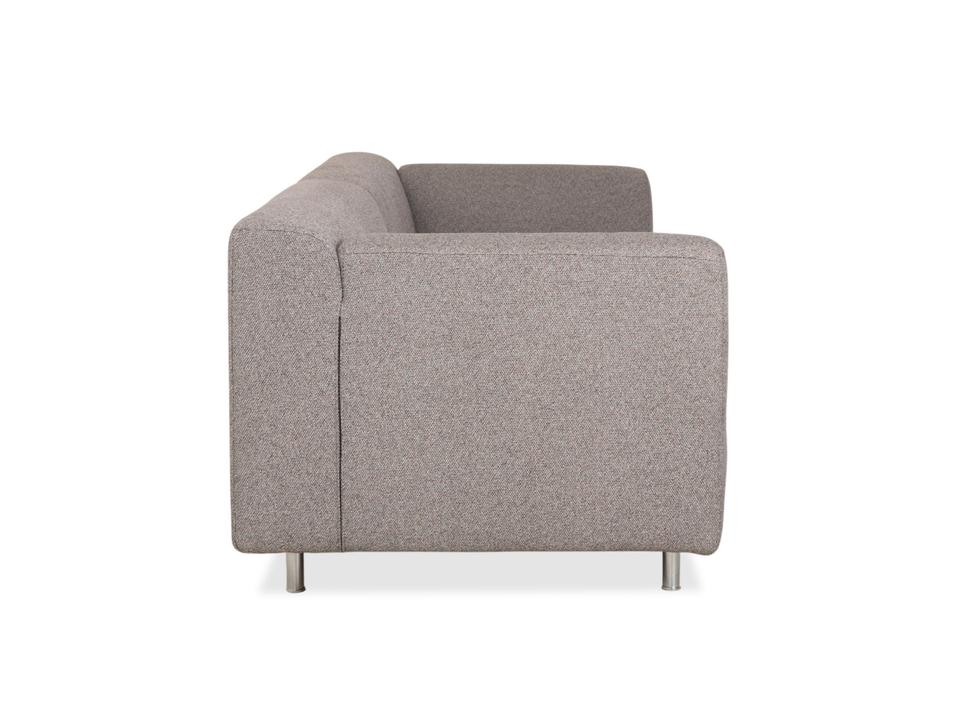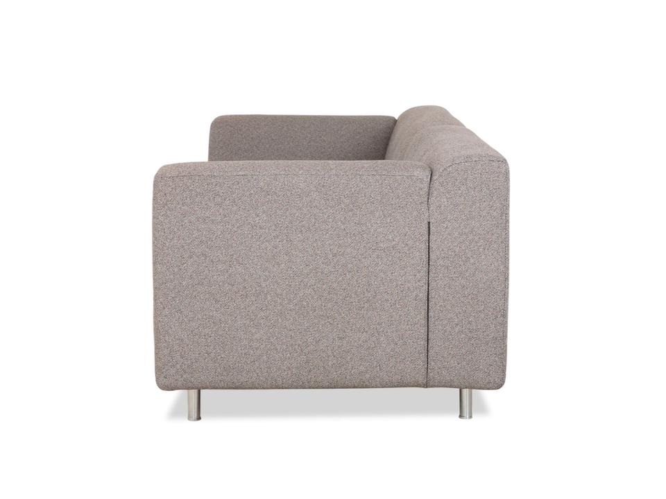 Cassina Met 250: Architektonische Klarheit von Piero LissoniMit dem Modell „Met“ holst du dir einen echten Meilenstein des italienischen Designs in dein Zuhause. Entworfen in den 90er Jahren von Piero Lissoni, steht dieses Sofa für absolute Reduktion und zeitlose Eleganz, die niemals aus der Mode kommt.Der Zweisitzer ist in einen hochwertigen, hellgrauen Stoff gehüllt. Dieser Farbton ist dezent und licht, wobei die feine Webstruktur (Melange-Optik) dem Bezug eine lebendige Tiefe verleiht und ihn unempfindlich gegenüber dem Alltag macht. Die Formensprache ist streng geometrisch und puristisch: Das Design verzichtet auf jegliche Schnörkel und setzt auf klare Linien. Die breiten, kubischen Armlehnen bilden eine Einheit mit dem Polsterkörper und rahmen die beiden Sitzflächen perfekt ein.Trotz seiner kompakten, blockartigen Form wirkt das Sofa nicht schwer. Dafür sorgen die schlanken, zylindrischen Metallfüße (typisch in poliertem Aluminium oder Chrom), die das Sofa elegant vom Boden abheben und den modernen, fast schwebenden Look unterstreichen.