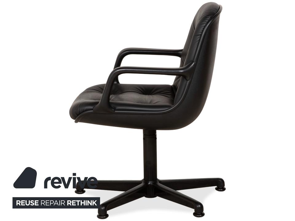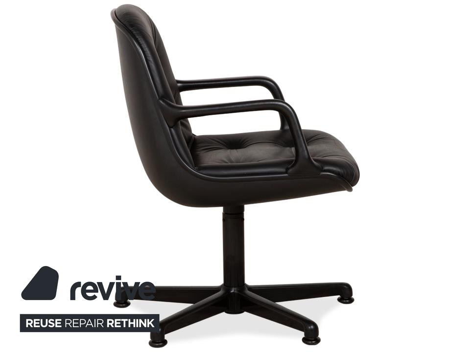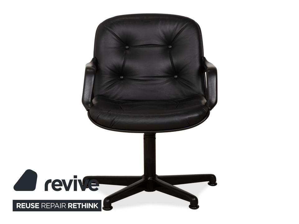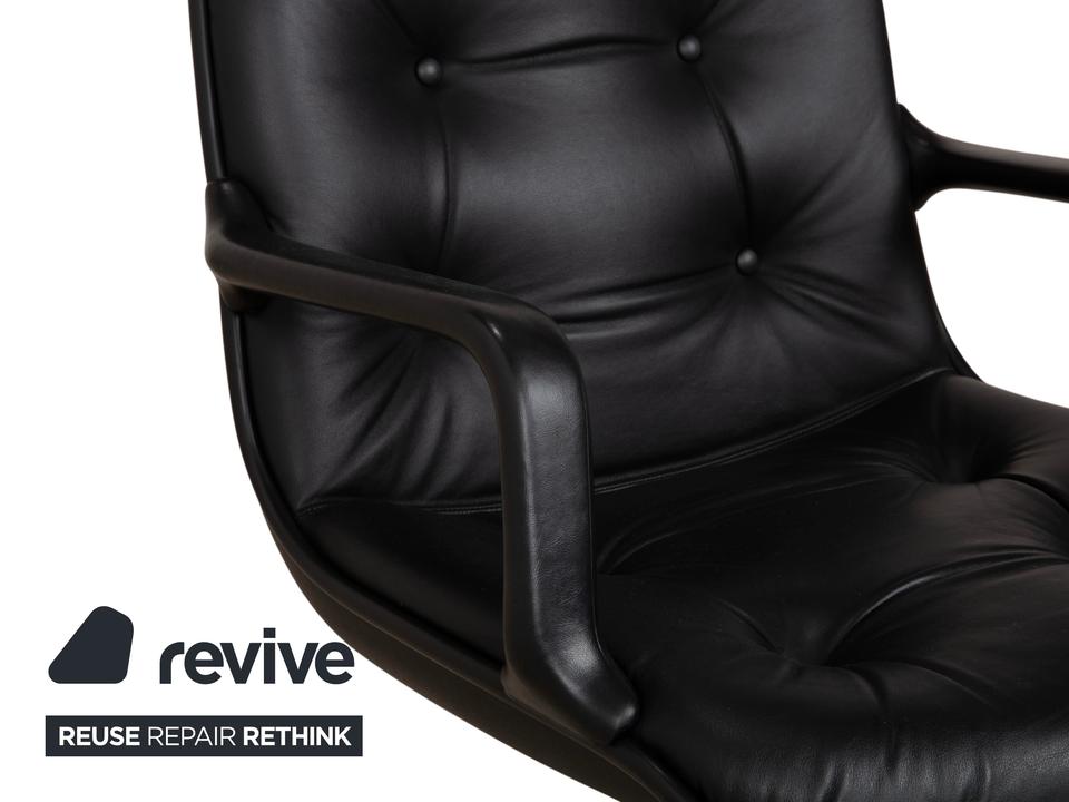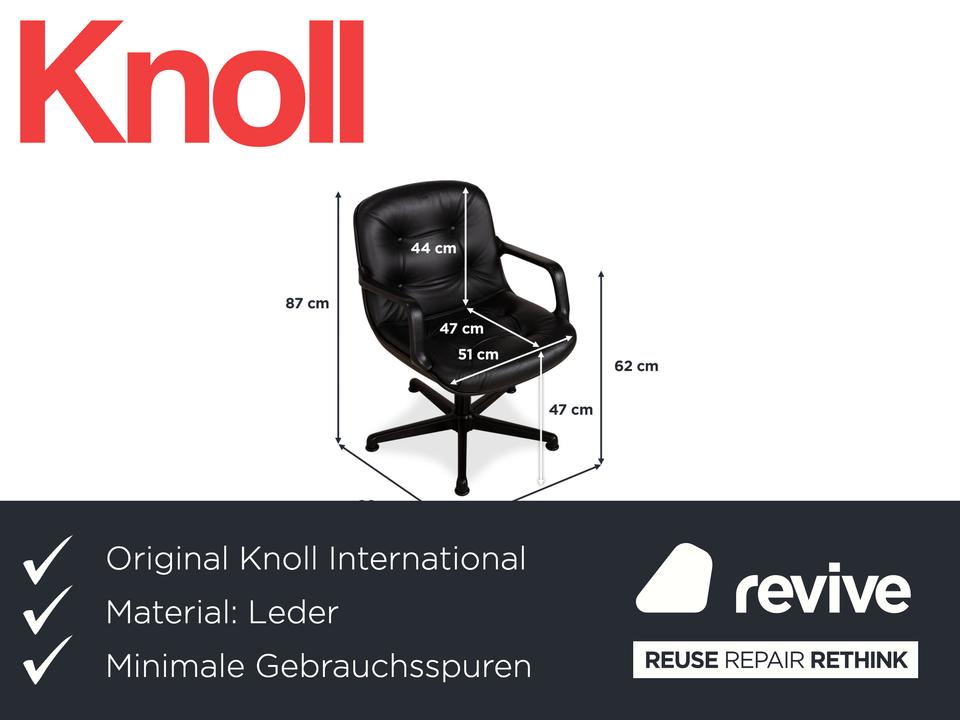 Dieser sehr bequeme Sessel wurde von Charles Pollock für Comforto entworfen und von Knoll produziert. Er ist mit wunderschönem braunem Leder mit schöner Patina bezogen. Der Sessel befindet sich in einem Vintage-Zustand, wie abgebildet. Das Leder ist weiterhin in sehr gutem Zustand. Der Sessel ist drehbar.Die Eleganz der Mitte des 20. Jahrhunderts: Der Executive Chair von Charles Pollock (1963) wurde für noch mehr Komfort optimiert und kann in einem ergonomisch durchdachten Sitzmöbel zu großen Ideen inspirieren. Pollock, der nach seinem Abschluss am Pratt Institute im Büro von George Nelson arbeitete, wurde von Florence Knoll für sein außergewöhnliches Talent geschätzt. Sein Directional Chair gilt als eines der bekanntesten Designs von Knoll, geprägt durch einen Aluminiumrahmen, der Sitz und Rücken sowohl visuell als auch konstruktiv trägt. Gefertigt von Knoll nach den ursprünglichen und strengen Vorgaben des Designers. Mit einer fünfjährigen Herstellergarantie. Hergestellt in den USA. Die abgesenkte Vorderkante des Sitzes sowie die geformte Rückenlehne sorgen für langanhaltenden Komfort.