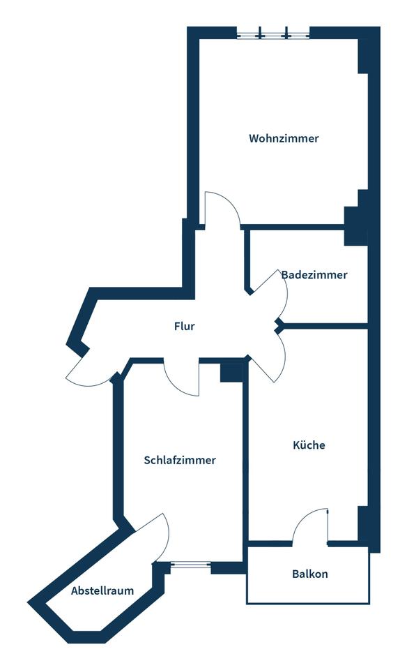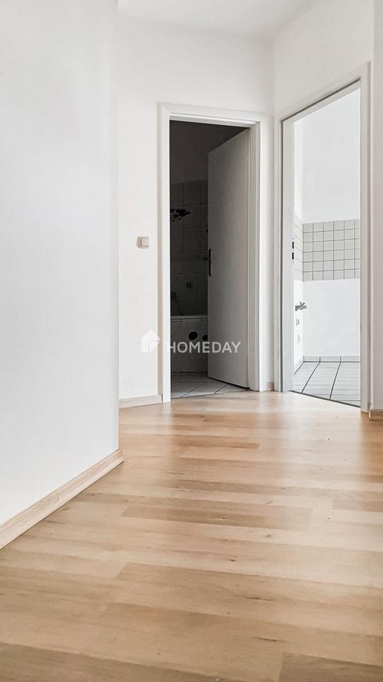 Die Wohnung ist über einen zentral gelegenen Flur erschlossen, von dem aus alle Räume bequem erreichbar sind. Linkerhand öffnet sich das rund 17 Quadratmeter große Wohnzimmer – das Herzstück der Wohnung. Die großzügige Fensterfläche lässt viel Tageslicht herein und schafft eine freundliche, ruhige Atmosphäre – ideal zum Entspannen oder um Gäste zu empfangen. Direkt angrenzend befindet sich das innenliegende Badezimmer, das sich in einem gepflegten Zustand präsentiert. Die separate Küche mit Fenster liegt gleich nebenan. Sie ist praktisch geschnitten, gut belüftet und bietet ausreichend Platz für kulinarische Ideen. Besonders hervorzuheben ist der vom Küchenbereich aus zugängliche Balkon zur hofseitigen Rückseite des Gebäudes. Dieser bietet einen geschützten Rückzugsort mit Blick ins Grüne – perfekt für den ersten Kaffee am Morgen oder entspannte Feierabendstunden im Freien.
