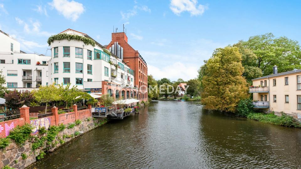 Die Lage besticht durch ihre Nähe zur Innenstadt, die in wenigen Minuten erreichbar ist, und gleichzeitig durch das authentisch urbane Umfeld mit hohem Freizeitwert. Ein besonderes Merkmal Plagwitz’ ist seine Wasserlage: Der Stadtteil wird von der Weißen Elster sowie dem Karl-Heine-Kanal durchzogen, die das Quartier mit einer reizvollen Flusslandschaft prägen. Entlang der Ufer erstrecken sich grüne Wege und Promenaden, die zu Spaziergängen, Radtouren oder erholsamen Stunden am Wasser einladen. Diese einzigartige Verbindung von Natur und Stadtleben schafft eine Atmosphäre, die sowohl lebendig als auch entschleunigend wirkt.