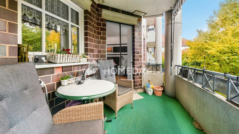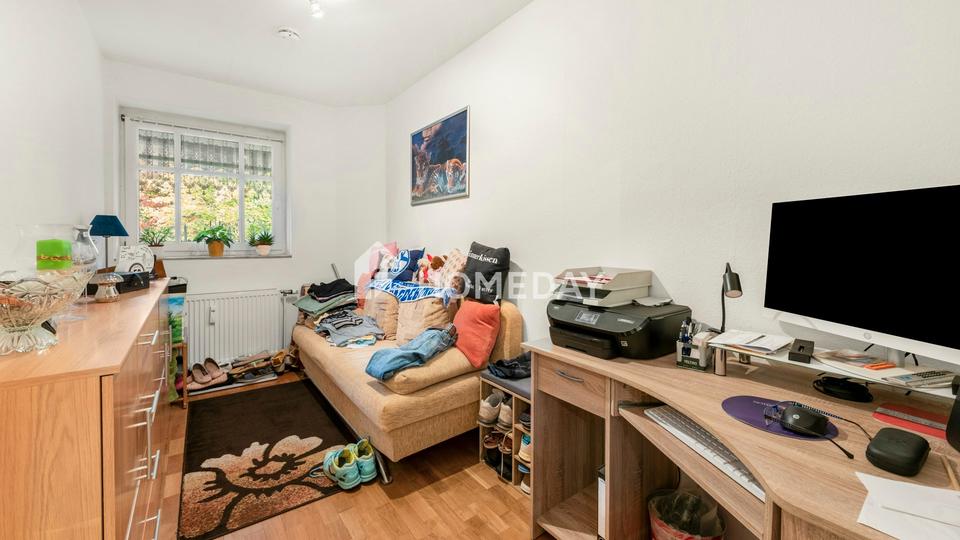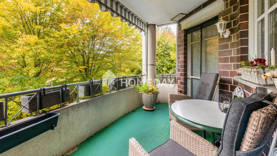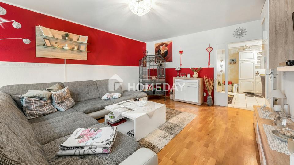Mit einer Wohnfläche von rund 87 Quadratmetern bietet das Zuhause ein durchdachtes Raumkonzept, das sich besonders gut für Paare und kleine Familien eignet. Der großzügige Wohnbereich beeindruckt mit Helligkeit und freundlicher Atmosphäre. Von hier aus gelangen Sie auf den Balkon, der einen herrlichen Blick ins Grüne bietet – der ideale Ort, um den Tag bei einem Kaffee zu starten oder einem guten Buch ausklingen zu lassen.