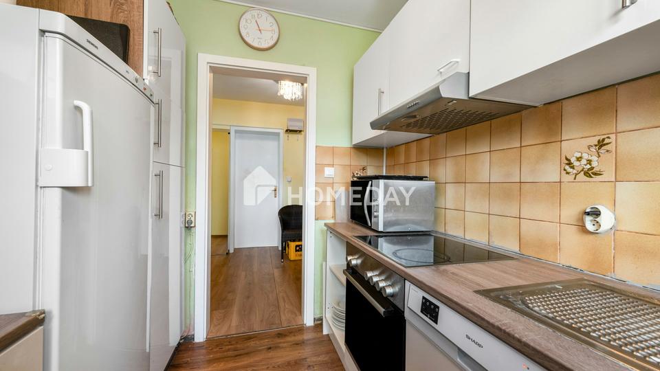 Ein besonderes Highlight ist der Balkon mit Westausrichtung – perfekt, um die Abendsonne zu genießen und den Tag entspannt ausklingen zu lassen. Das Tageslichtbad und ein separates WC verfügen jeweils über Fenster und präsentieren sich in einem gepflegten, ansprechenden Zustand. Die vorhandene Einbauküche gehört den derzeitigen Mietern und ist nicht Bestandteil des Kaufgegenstandes.