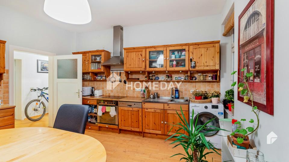 Die helle Etagenwohnung mit zwei Zimmern und einer Wohnfläche von etwa 62 Quadratmetern liegt in zentraler Umgebung und befindet sich im dritten Obergeschoss eines gepflegten Mehrfamilienhauses. Über das gemeinschaftlich genutzte Treppenhaus gelangt man bequem in die Wohnung, die sich in einem zeitlosen Stil präsentiert. Der einladende Flur bildet den Mittelpunkt und führt zu einem Abstellraum, der Küche, dem Schlafzimmer, dem Bad sowie dem Wohnzimmer. Das Tageslichtbad fügt sich harmonisch in das Gesamtbild ein und zeigt sich in einem gepflegten Zustand. Eine Eckbadewanne und ein Handtuchwärmer ergänzen die funktionale Einrichtung.