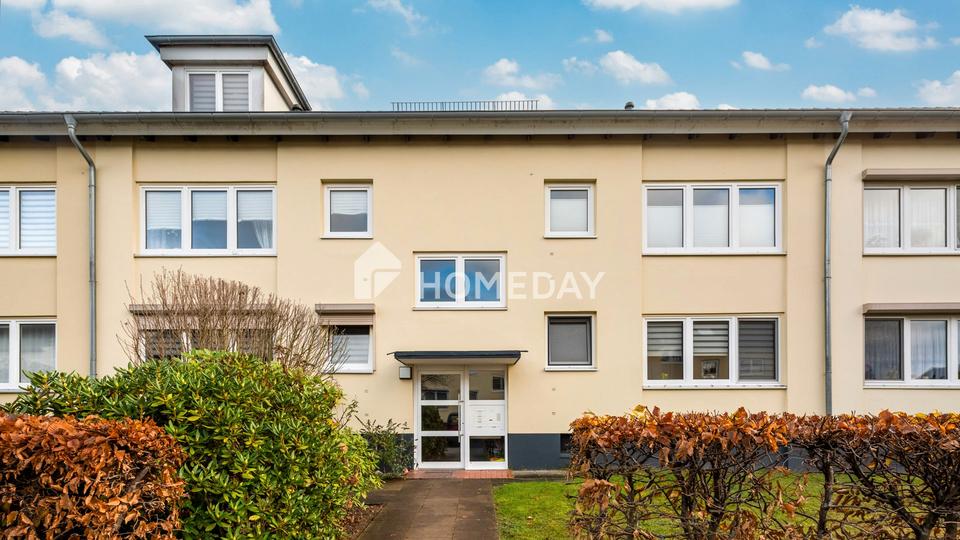 Die gut geschnittene Hochparterre-Wohnung aus dem Jahr 1961 empfängt einen mit einem gepflegten und angenehm ruhigen Wohngefühl. Bereits beim Blick auf das Mehrfamilienhaus zeigt sich der ordentliche Gesamteindruck: Eine saubere Fassade, gepflegte Außenbereiche und ein harmonisches Wohnumfeld prägen das Erscheinungsbild. Die gemeinschaftlichen Wege, Grünflächen und der Eingangsbereich wirken einladend und werden durch die regelmäßigen Serviceleistungen für Reinigung und Gartenpflege zuverlässig instandgehalten.