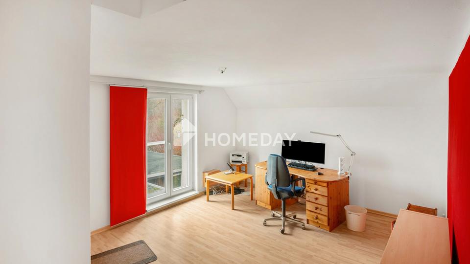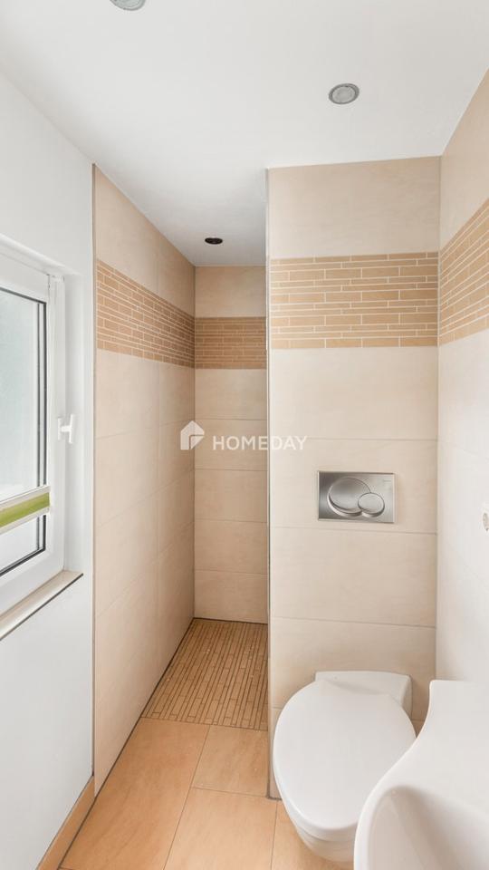 Die zweite Wohneinheit überzeugt ebenfalls durch ihre Großzügigkeit und Funktionalität. Sie umfasst vier Zimmer, zwei Tageslichtbäder, einen Abstellraum sowie ein Gäste-WC mit Waschmaschinenanschluss. Zusätzlichen Mehrwert bietet die ausgebaute Dachspitze.