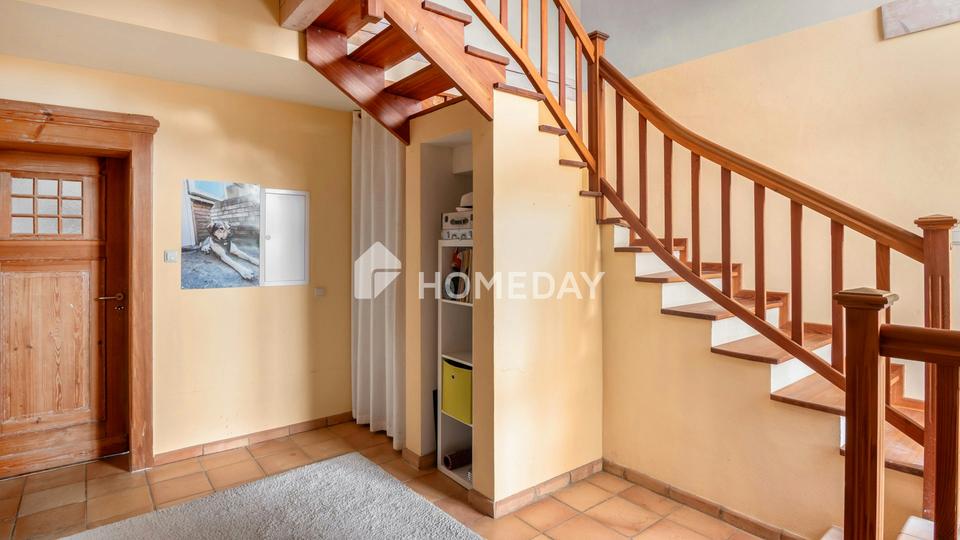 Auf ca. 345,93 m² Wohnfläche verteilen sich neun Zimmer auf zwei abgeschlossene Wohneinheiten mit separaten Eingängen, ideal für die Eigennutzung mit zusätzlicher Vermietung oder als attraktive Kapitalanlage. Die separate Küche mit Einbauküche bietet großzügige Arbeitsflächen und ein angenehmes Raumgefühl. Ein besonderes Highlight ist der Balkon im Obergeschoss mit westlicher Ausrichtung. Auch die Terrasse im Garten ist nach Westen orientiert und lädt zu entspannten Stunden im Freien ein. Diese Wohneinheit ist nicht unterkellert und verfügt über einen separaten Abstellraum.