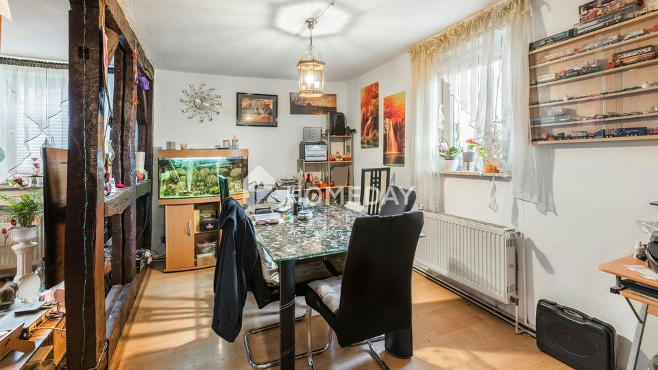 Mit einer Wohnfläche von ca. 103 Quadratmetern bietet das Haus ausreichend Platz für individuelle Gestaltungsmöglichkeiten. Die fünf Zimmer sind funktional geschnitten und schaffen ein angenehmes Wohnambiente. Besonders hervorzuheben ist das große Tageslichtbad mit Dusche, das für hohen Komfort sorgt. Die Wohnräume sind mit einer Kombination aus Fliesen und Laminat ausgestattet, was für eine pflegeleichte und ansprechende Gestaltung sorgt.