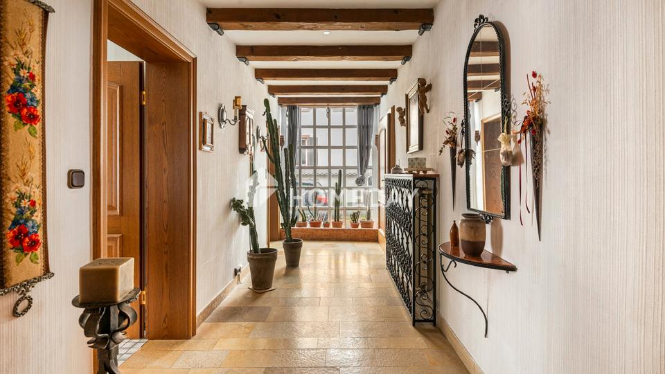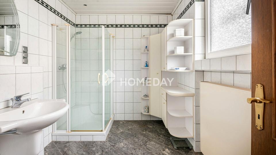 Die Wohnfläche von rund 121 Quadratmetern verteilt sich auf vier gut geschnittene Zimmer und bietet vielfältige Nutzungsmöglichkeiten für Familien oder Paare mit Platzbedarf. Im Inneren präsentiert sich das Haus mit einer normalen, aber ansprechenden Ausstattung. Besonders hervorzuheben sind die Einbauküche sowie die beiden Tageslichtbäder, eins mit Badewanne und eins mit Dusche. Geschmackvolle Bodenbeläge aus Parkett, Fliesen und Naturstein unterstreichen den wohnlichen Charakter der Immobilie.