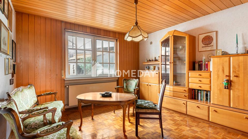 Das gemütliche Einfamilienhaus präsentiert sich in einem gepflegten Zustand und überzeugt durch seine besondere Architektur sowie eine zentrale Lage. Errichtet im Jahr 1967 in massiver Bauweise, bietet die Immobilie auf einem ca. 346 Quadratmeter großen Grundstück ein angenehmes und familienfreundliches Wohnumfeld. Neben dem Haus stehen eine sonnige Terrasse mit Südostausrichtung sowie ein Stellplatz im Freien zur Verfügung. Der pflegeleichte Garten bietet ausreichend Platz für gemeinsame Stunden im Freien und lädt zum Entspannen ein.