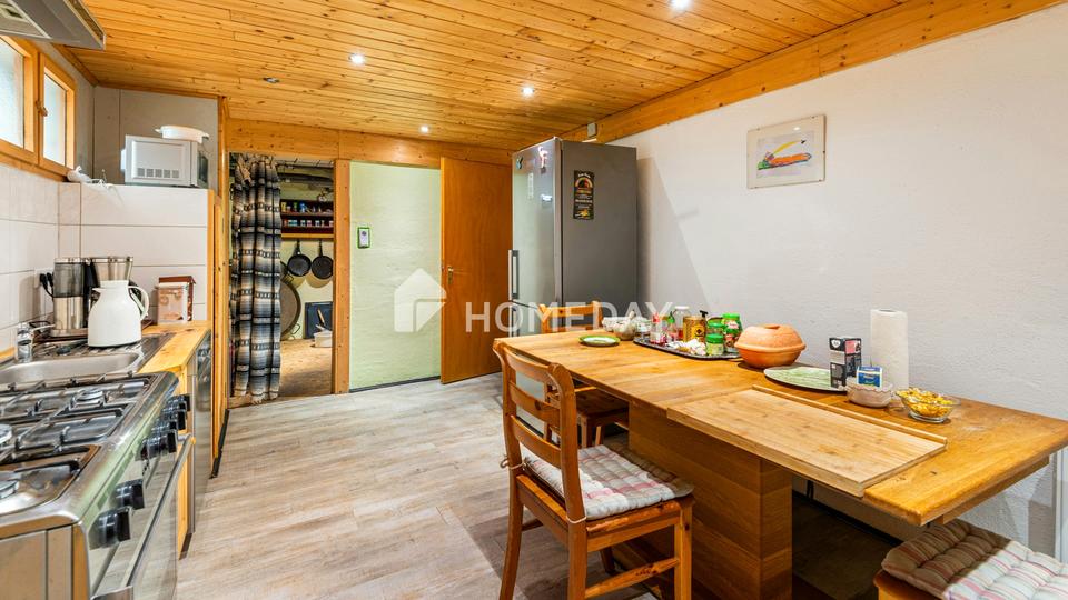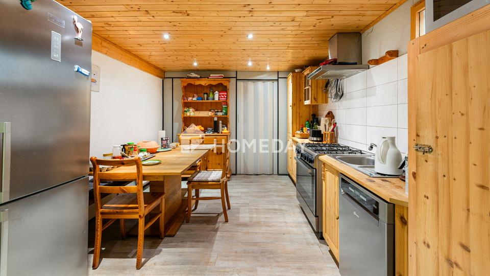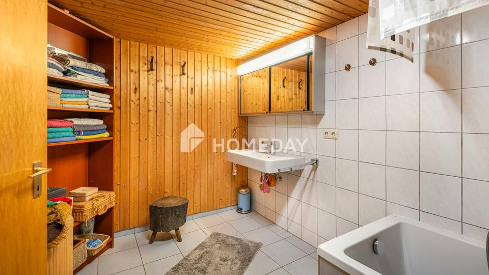 Ein weiterer Pluspunkt ist der ausgebaute Keller mit zwei weiteren Zimmern, Küche und Bad. Der Keller ist sowohl über eine innenliegende Treppe als auch separat über eine Außentreppe erreichbar und bietet dadurch flexible Nutzungsmöglichkeiten. Eine Waschküche ist ebenfalls vorhanden. Die Kellerfläche ist nicht in der angegebenen Wohnfläche enthalten. Die beim Verkauf bestehende Dienstbarkeit zur Mitbenutzung wird im Zuge der Veräußerung ausgetragen.