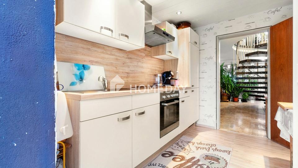 Die Einbauküche mit hochwertigen Markengeräten ist bereits im Kaufpreis enthalten. Das Tageslichtbad ist mit einer Badewanne und einem Bidet ausgestattet und überzeugt durch seinen gepflegten Zustand. Im Obergeschoss befindet sich zudem eine sonnige Loggia, die einen idealen Ort für ruhige Stunden oder den ersten Kaffee am Morgen bietet.