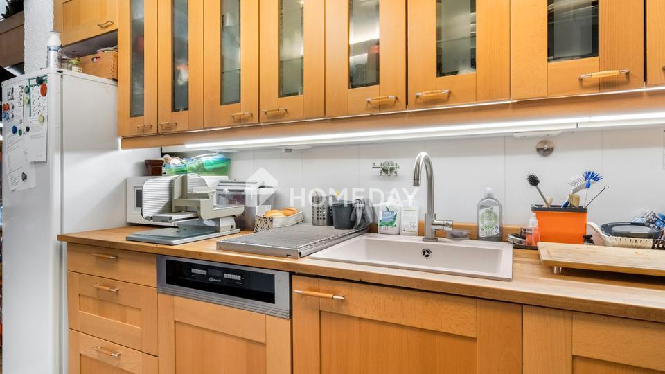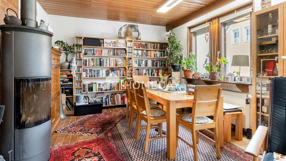 Besonders erwähnenswert ist das teilweise ausgebaute Nebengebäude, das zusätzlichen Wohnraum schafft. Hier lassen sich ein Büro oder ein Atelier perfekt realisieren – ideal für kreative Köpfe oder das Arbeiten von Zuhause. Der Vollkeller bietet weitere beheizte Räume und viel Nutzfläche, etwa für Vorräte oder einen Hobbybereich.