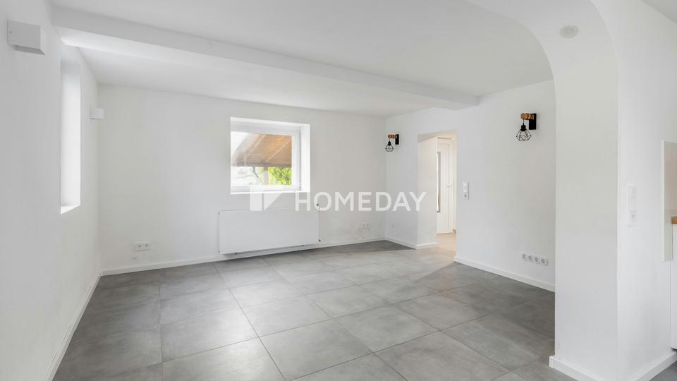 Beim Betreten des Hauses werden Sie von einem hellen, einladenden Flur empfangen, der den Charakter und die Wärme dieser Immobilie spürbar macht. Auf etwa 61 Quadratmetern Wohnfläche erstrecken sich drei gut geschnittene Zimmer über zwei Etagen – ideal für Paare, kleine Familien oder Individualisten, die das Besondere lieben.