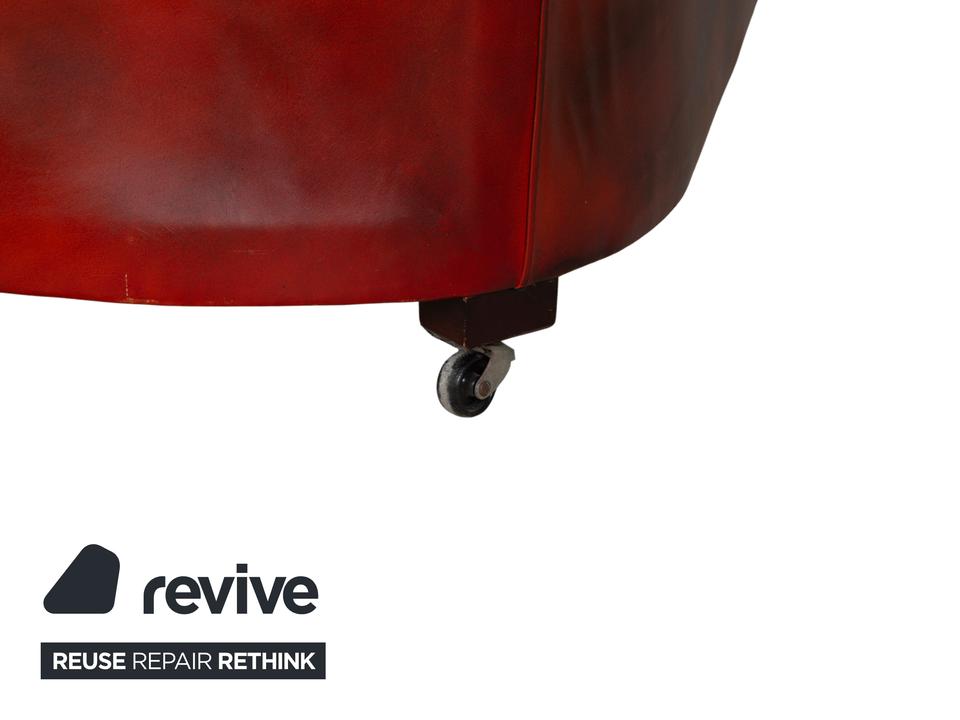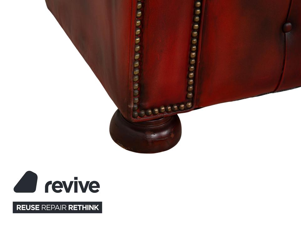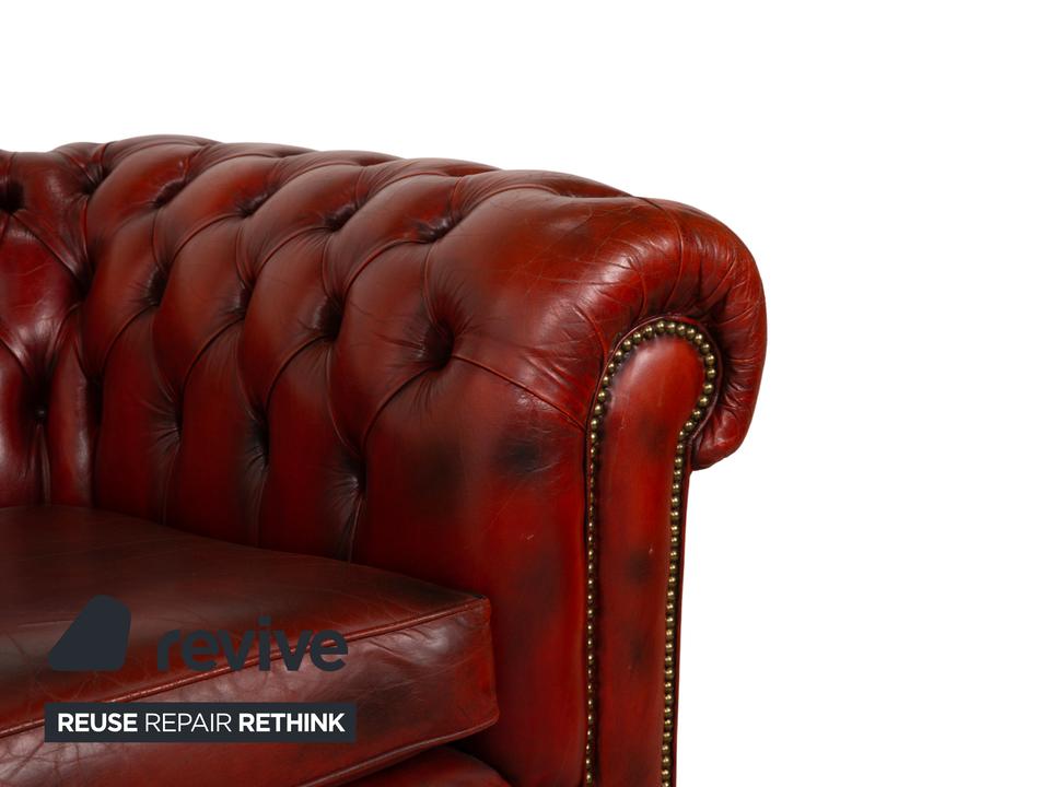 Hier hast du den absoluten Urvater aller klassischen Sofas: Ein mächtiges Chesterfield in einem wunderschönen, antik-wirkenden Rotbraun. Dieses Möbelstück ist mehr als eine Couch, es ist eine Institution. Mit seiner typischen Kapitonierung (die tiefe Knopfheftung im Rücken und an den Lehnen) und den markanten Nietenbeschlägen an der Front bringt es sofort diesen unverwechselbaren „Gentleman’s Club“-Charme in dein Zuhause.Da es sich um einen Viersitzer handelt, hast du hier wirklich imposant viel Platz. Das Leder hat genau die richtige Patina und Farbnuance, die ein Chesterfield braucht, um nicht neu und steril, sondern lebendig und charakterstark zu wirken. Die massiven, geschwungenen Armlehnen und die gedrechselten Holzfüße runden das Bild ab. Ein Chesterfield wird mit den Jahren eigentlich immer nur schöner – es ist ein Möbelstück für die Ewigkeit, das jedem Raum sofort Würde und Klasse verleiht.