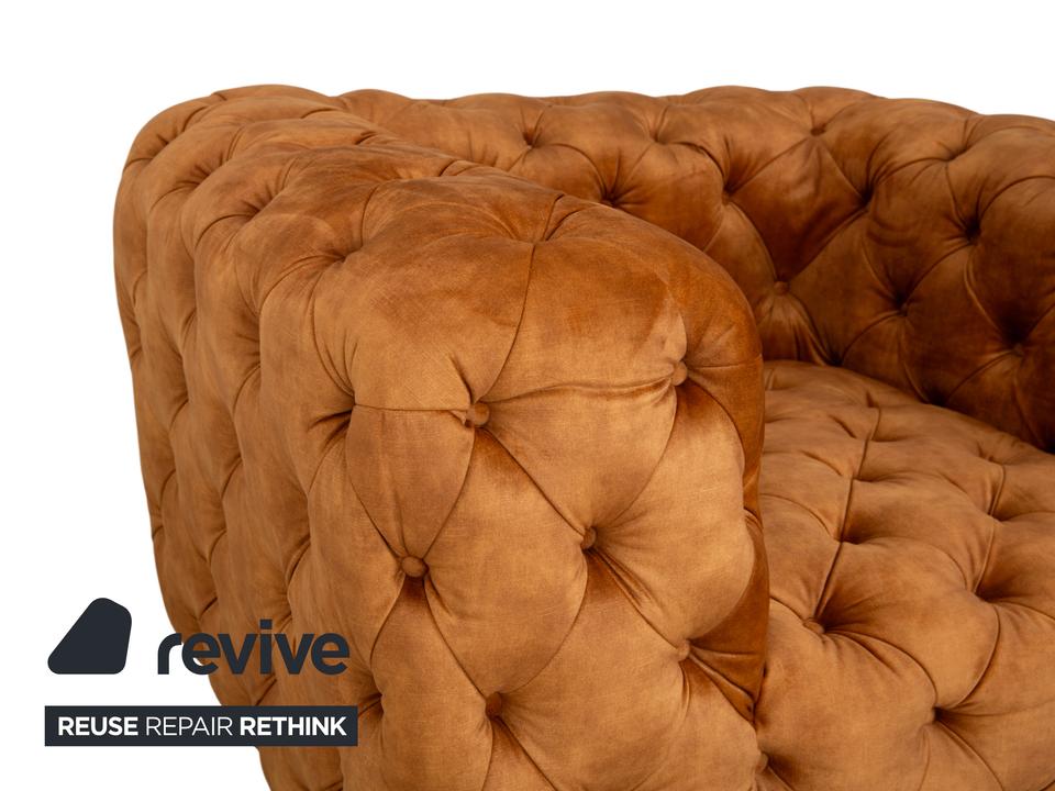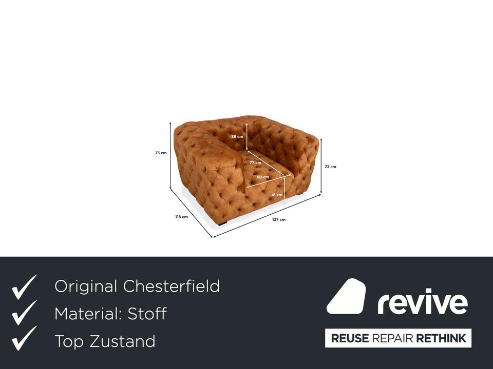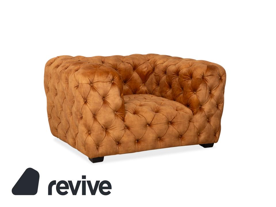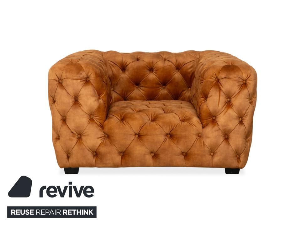 Mit diesem Sessel von Kare Design holst du dir puren Glamour und gute Laune in dein Zuhause. Er ist eine spektakuläre Neuinterpretation des klassischen Chesterfield-Stils: Statt streng und antik, kommt er hier in einer modernen, kubischen Form und einem herrlich weichen Stoffbezug daher.Die Farbe ist der absolute Wahnsinn: Ein sattes Gold-Gelb (Ocker), das je nach Lichteinfall schimmert und Wärme ausstrahlt. Das samtige Material fühlt sich nicht nur luxuriös an, sondern bringt die typische, tiefe Knopfheftung (Kapitonierung), die sich über den gesamten Sessel (Rücken, Armlehnen und Sitzfläche) zieht, perfekt zur Geltung. Durch die breiten Armlehnen und die rundum verlaufende Polsterung sitzt du wie in einem gemütlichen Nest. Getragen wird der massive Block von dezenten, dunklen Füßen, die einen schönen Kontrast zum leuchtenden Stoff bilden. Ein echtes Statement-Piece für alle, die „08/15“ langweilig finden.