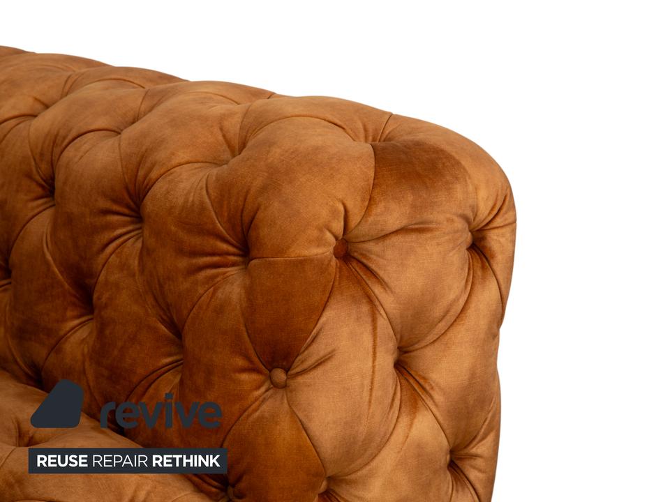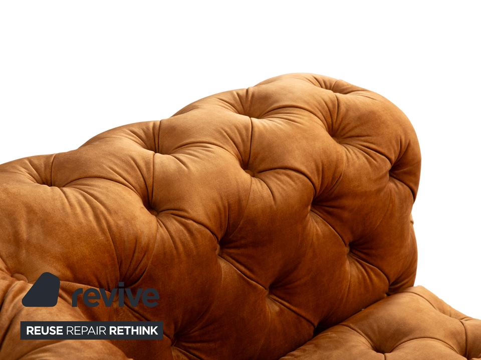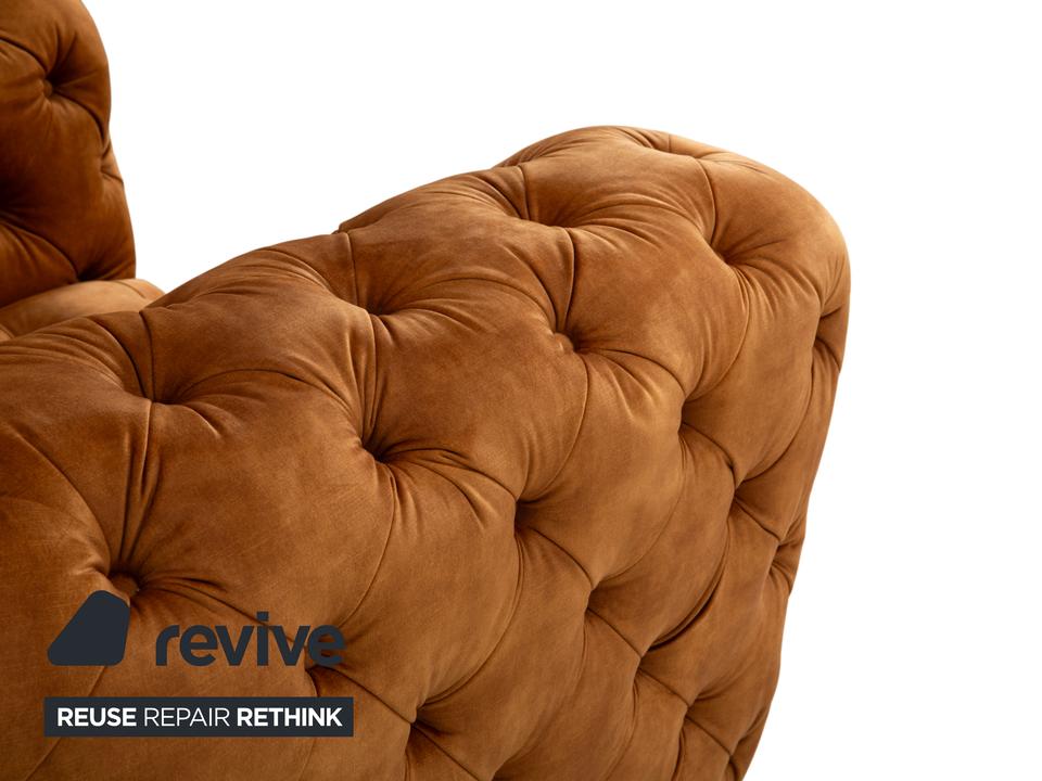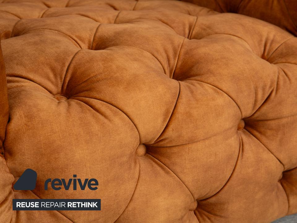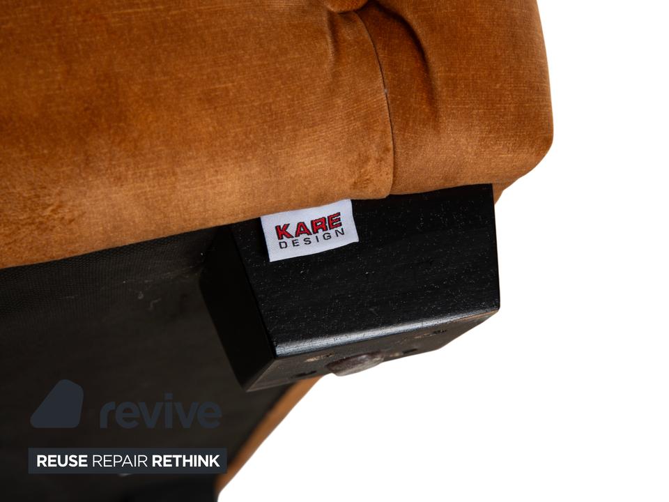 Mit diesem Sessel von Kare Design holst du dir puren Glamour und gute Laune in dein Zuhause. Er ist eine spektakuläre Neuinterpretation des klassischen Chesterfield-Stils: Statt streng und antik, kommt er hier in einer modernen, kubischen Form und einem herrlich weichen Stoffbezug daher.Die Farbe ist der absolute Wahnsinn: Ein sattes Gold-Gelb (Ocker), das je nach Lichteinfall schimmert und Wärme ausstrahlt. Das samtige Material fühlt sich nicht nur luxuriös an, sondern bringt die typische, tiefe Knopfheftung (Kapitonierung), die sich über den gesamten Sessel (Rücken, Armlehnen und Sitzfläche) zieht, perfekt zur Geltung. Durch die breiten Armlehnen und die rundum verlaufende Polsterung sitzt du wie in einem gemütlichen Nest. Getragen wird der massive Block von dezenten, dunklen Füßen, die einen schönen Kontrast zum leuchtenden Stoff bilden. Ein echtes Statement-Piece für alle, die „08/15“ langweilig finden.