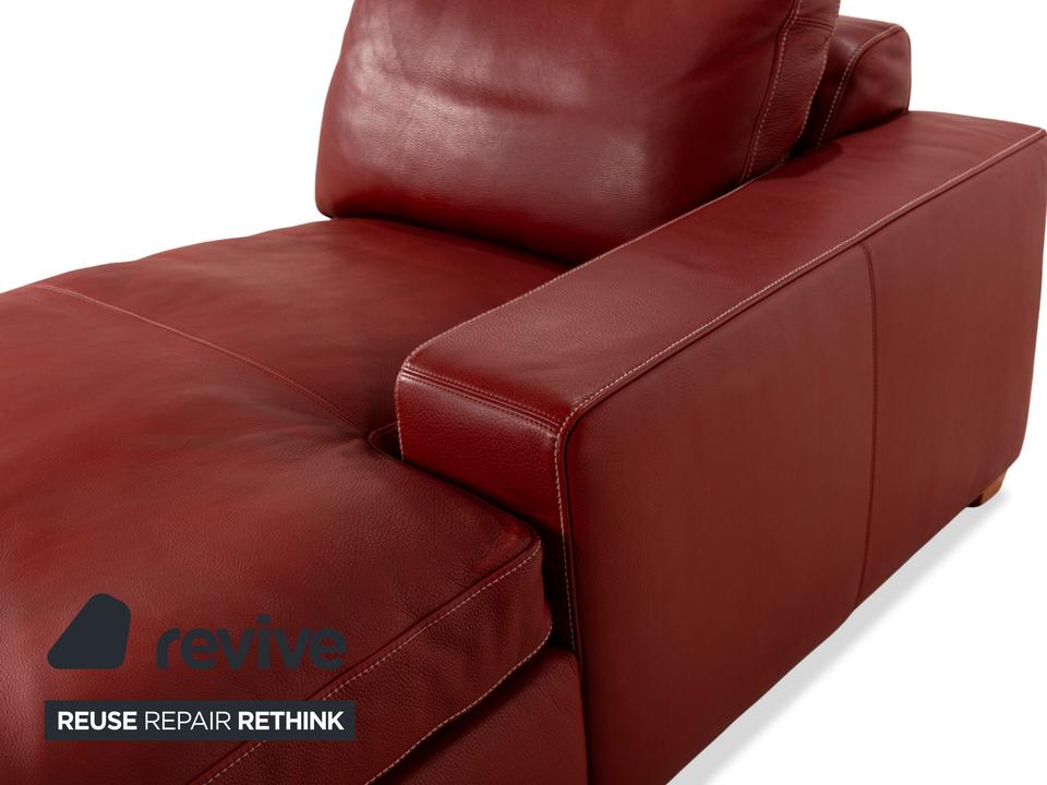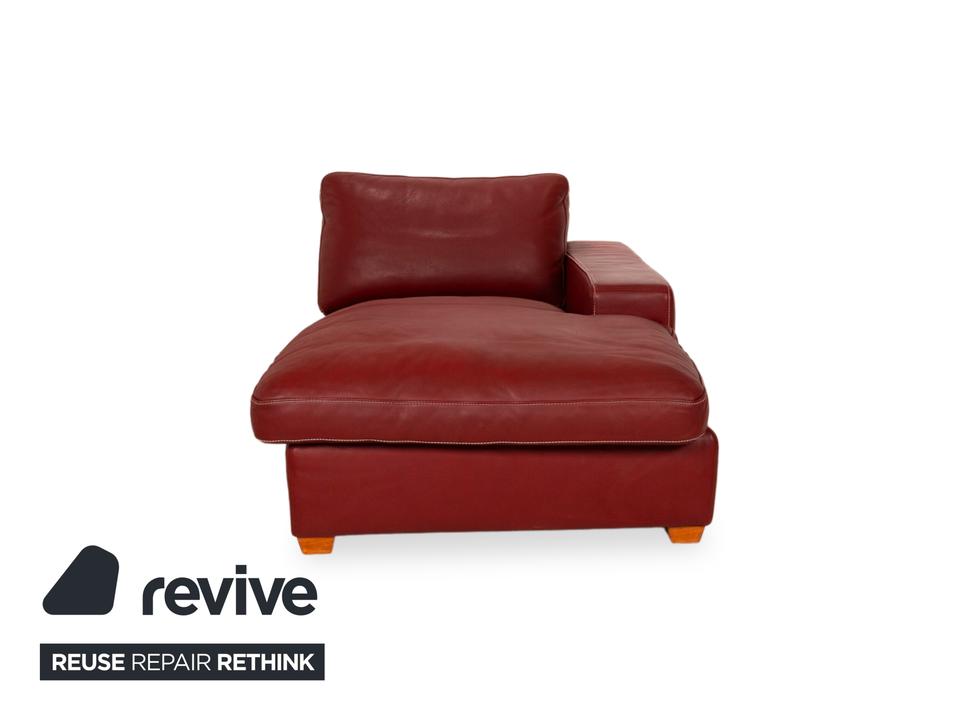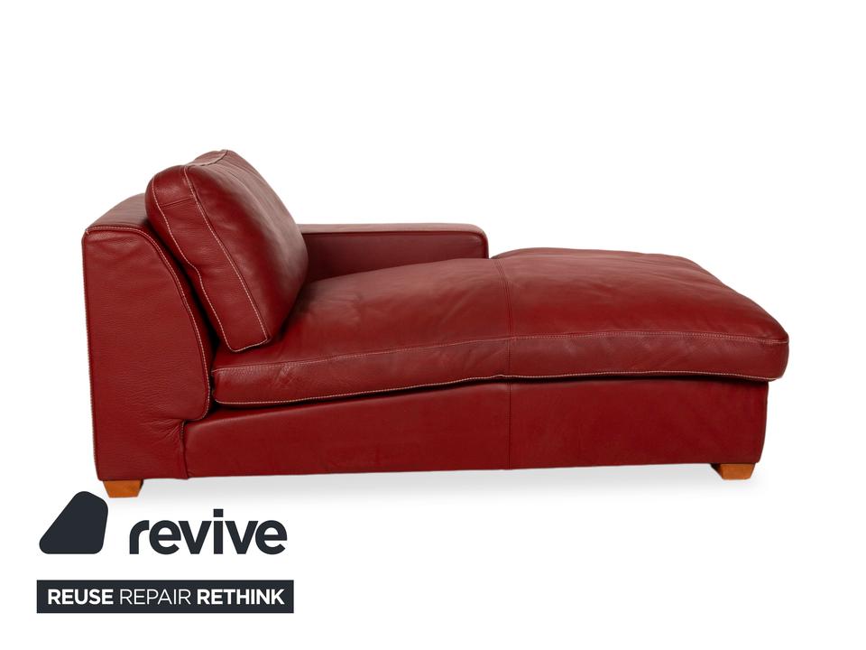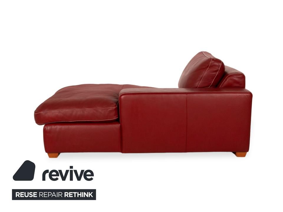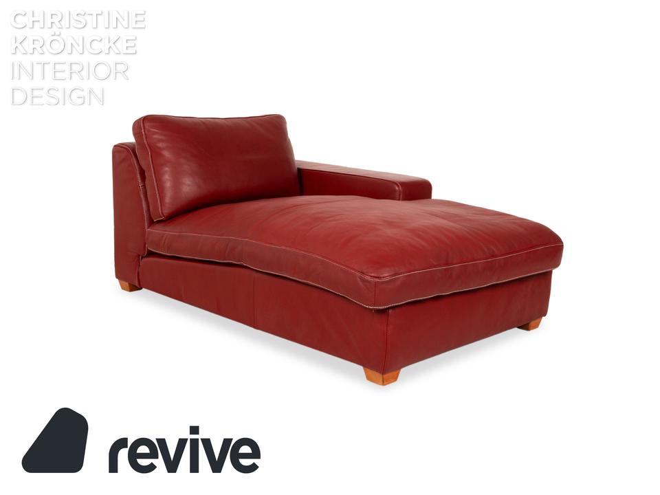 Die elegante Liege in rotem Leder von Christina Kröncke überzeugt durch ihre mutige Farbe ihre großzügigen Polster.