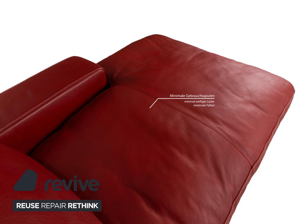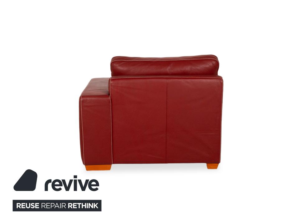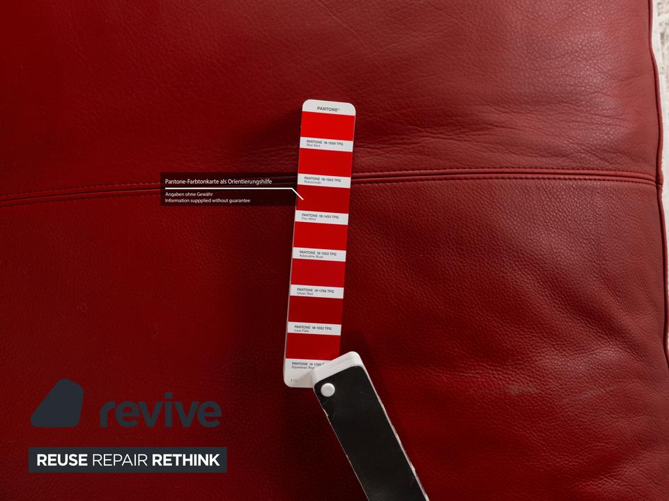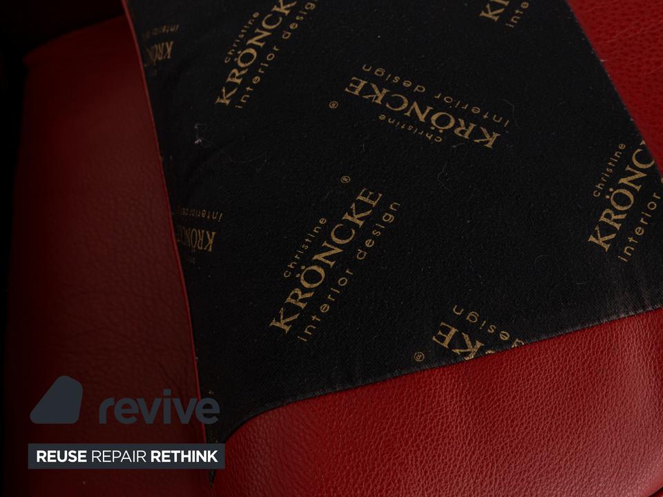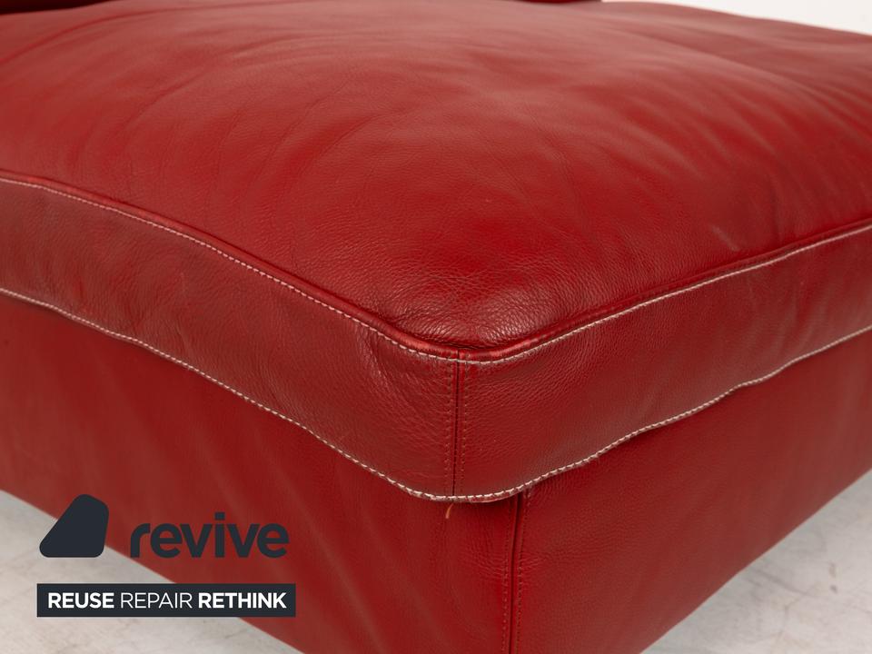 Die elegante Liege in rotem Leder von Christina Kröncke überzeugt durch ihre mutige Farbe ihre großzügigen Polster.