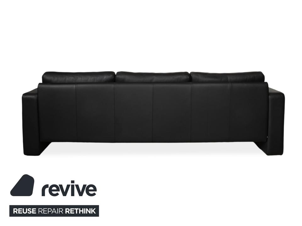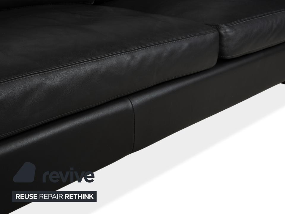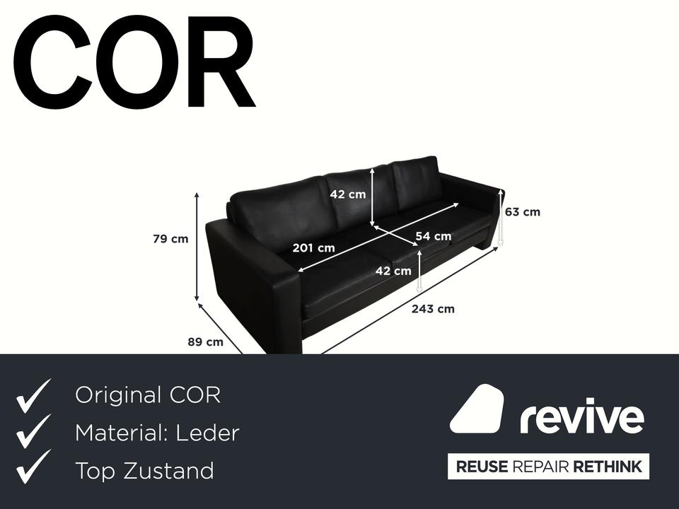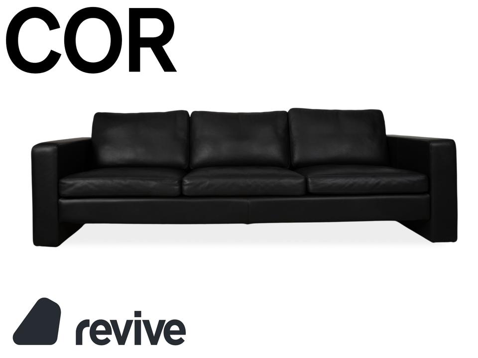 Dieses schwarze COR Conseta ist ein absolut klassischer Entwurf. Designer Friedrich-Wilhelm Möller entwickelte das Conseta-Design bereits im Jahr 1964, doch in dieser Ausführung wirkt das Sofa immer noch absolut modern und zeitlos. Bei diesem Dreisitzer in schwarzem Leder wird das Design auf seine puristischste Form reduziert: Ein tiefer Korpus, die klaren, rechten Winkel der Armlehnen und der Rückenpartie definieren die kubische Form, die diesen Klassiker seit Jahrzehnten auszeichnet. Mit seiner großzügigen Breite bietet der Dreisitzer viel Platz, um sich entspannt auszustrecken oder in geselligen Runden zusammenzusitzen. Durch das minimalistische Design in klassischem schwarzen Leder funktioniert das Sofa hervorragend als Herzstück für fast alle Einrichtungsstile.
