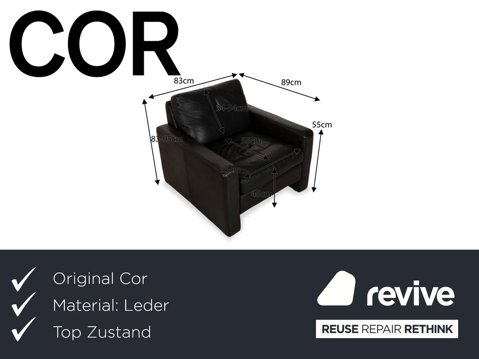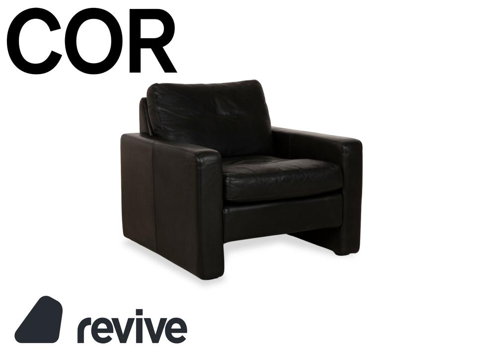 Der Sessel Conseta von Cor überzeugt durch sein klassisches, geometrisches Design und ist so eine stilvolle Ergänzung für das moderne Wohnzimmer. Er ist mit einem schwarzen Echtleder bezogen und verfügt über eine in der Höhe verstellbare Rückenlehne.