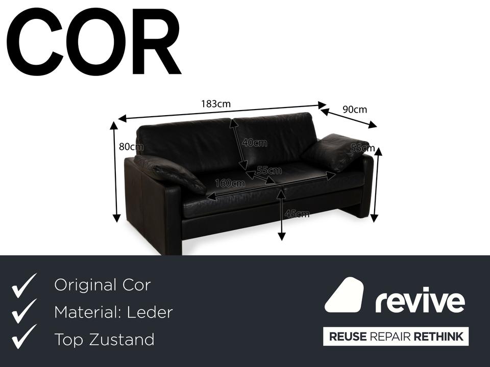 COR Conseta Leder Zweisitzer Schwarz Sofa Couch