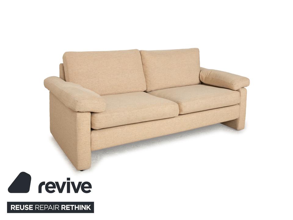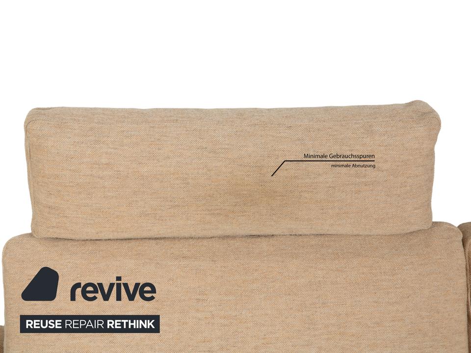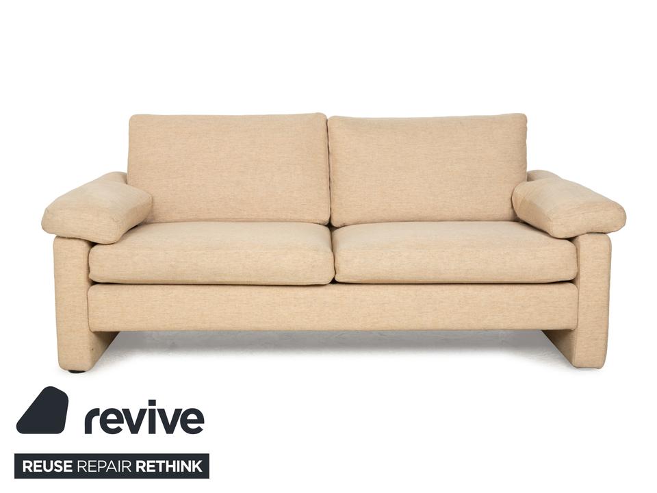 Das Sofa Conseta von Cor ist ist mit einem beigefarbenen Stoff bezogen und steht auf bodentiefen Seitenteilen. Der Zweisitzer zeichnet sich durch sein klassisches und unaufdringliches Design aus, das ihn zusammen mit der neutralen Farbe zu einem einfach kombinierbaren Möbelstück macht. Breite Armlehnen, großzügige Polsterung und versetzbare Kopfstützen versprechen hohen Komfort.