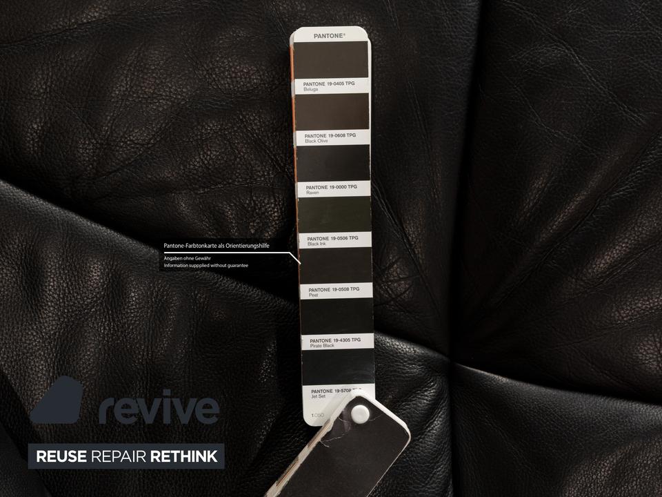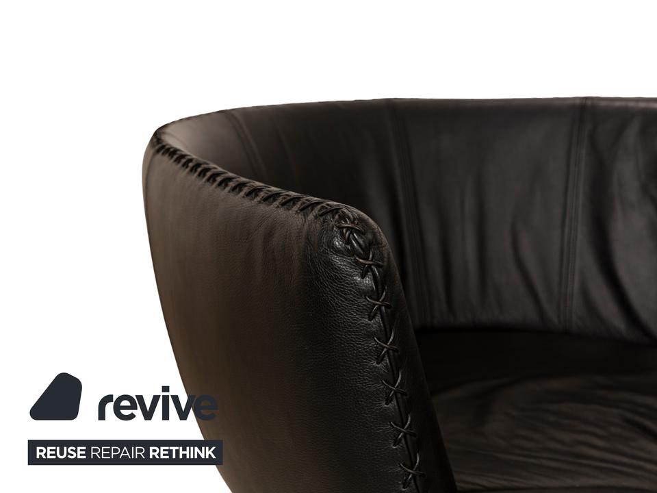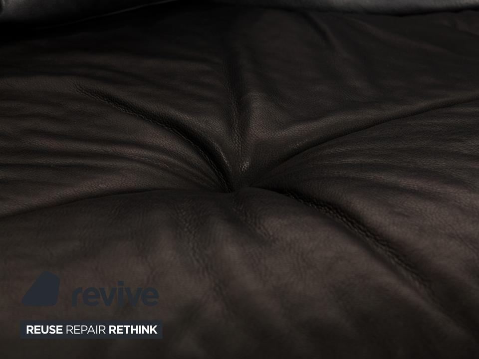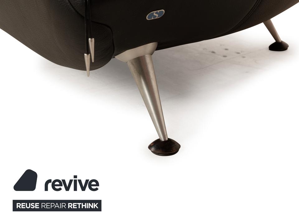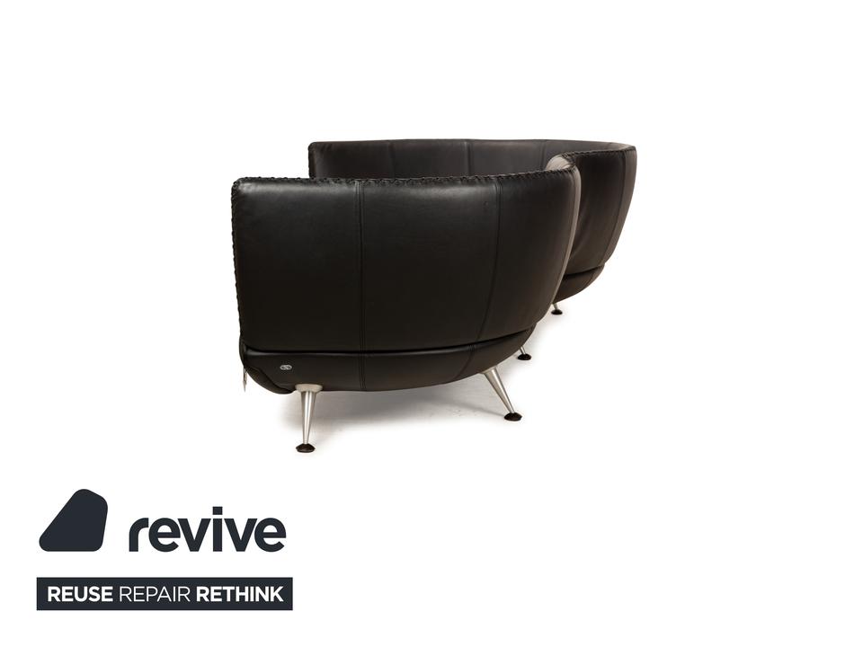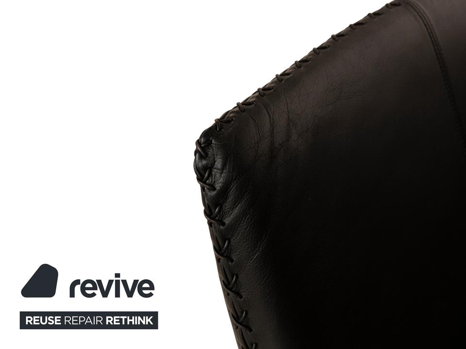 Der Dreisitzer DS-102 von de Sede ist mit einem schwarzem Leder bezogen und vollkommen von diesem ummantelt. Das Sofa auf silbernen, leicht winklig abstehenden Metallfüßen. Er zeichnet sich durch die organische Form und das extravagante Design aus. Eine auffällige Naht entlang der Kanten sorgt auch für Spannung im Detail. Exzellentes Qualitätshandwerk und zeitloses Design gehen hier Hand in Hand.