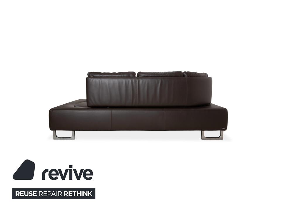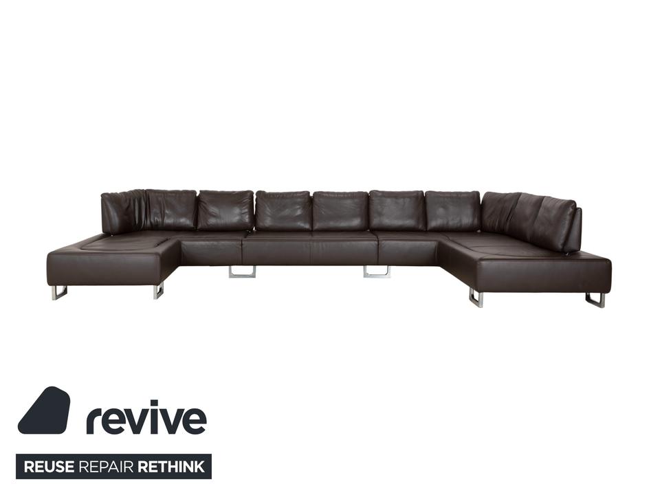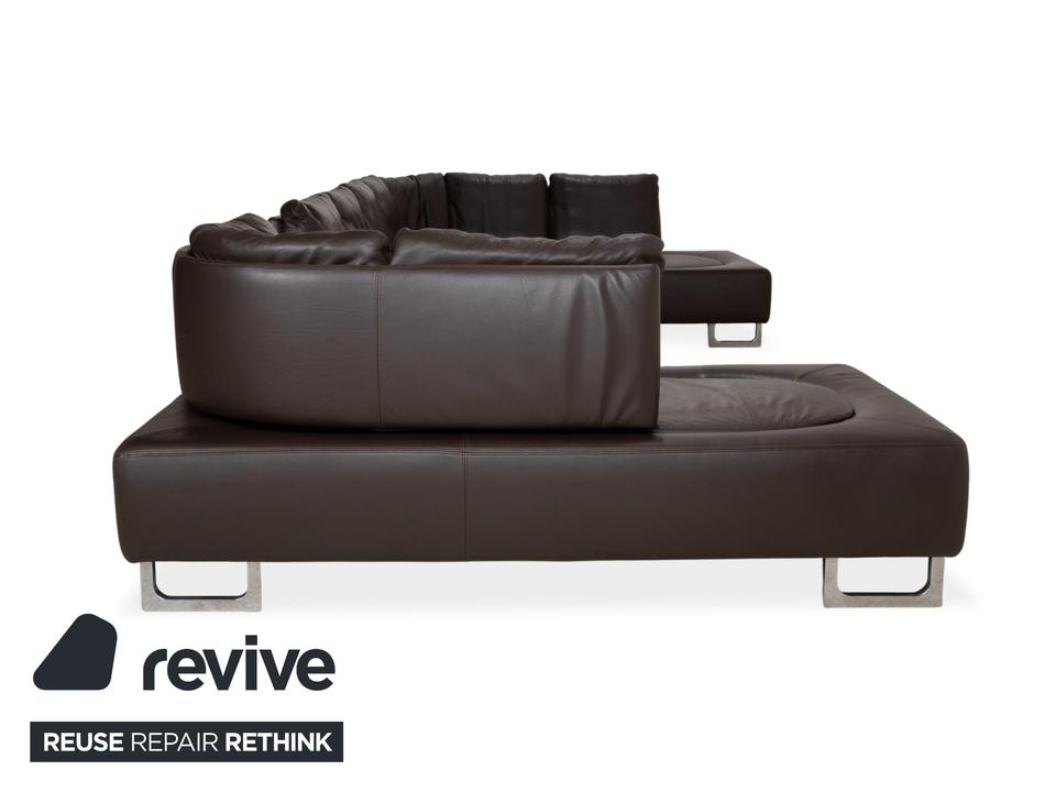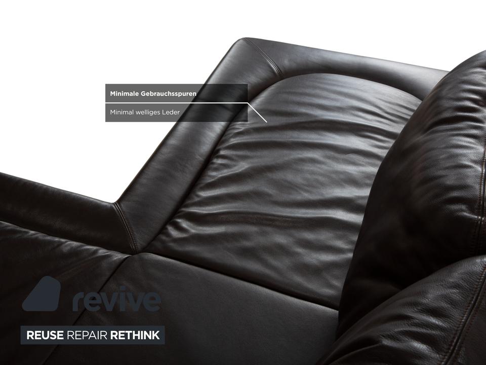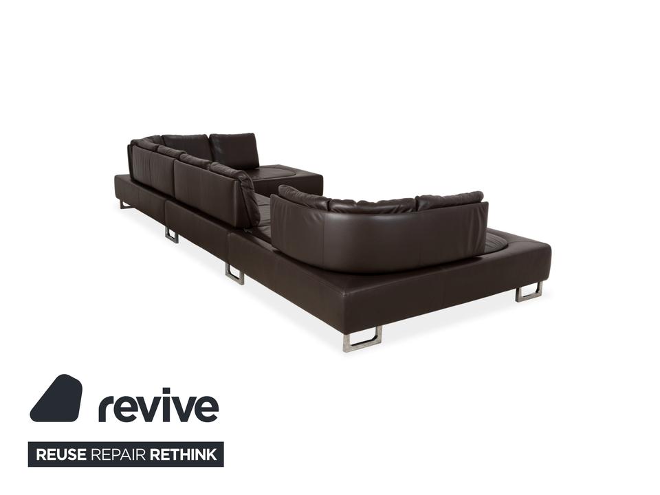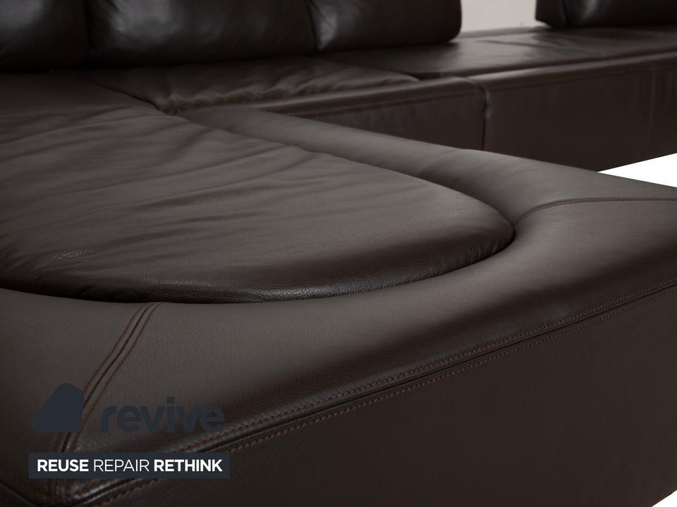 Das Modell DS-165, entworfen von Hugo de Ruiter, ist weit mehr als nur ein Sofa: es ist eine Wohnlandschaft, die Schweizer Handwerkskunst neu definiert. Das Herzstück dieses Designs ist die innovative 360-Grad-Funktion: Die Rückenlehnen lassen sich manuell entlang der Kurven der großzügigen Plattform verschieben. So kann die Sitzposition immer wieder neu ausgerichtet werden: für das Heimkino, mal als kommunikative Runde oder als offene Wohnlandschaft. Mit einer Rückenhöhe von 45 cm (aufgesetzt) bietet das Sofa genau den richtigen Halt, ohne den Blick durch den Raum zu versperren.Der Bezug aus sattem, dunkelbraunem Leder ist ein haptisches Erlebnis: Das charakteristische, dicke de Sede Leder ist griffig, robust und dennoch handschuhweich. Ein besonderes Augenmerk liegt auf dem Fundament: Die markanten Kufenfüße bestehen aus alupoliertem Metall, das einen schönen Akzent mit dem dunklen Leder bildet. Sie verleihen dem massiven Volumen nicht nur eine schwebende Leichtigkeit und einen glänzenden Kontrast, sondern sind auch durchdacht ausgestattet: Dank integrierter Gleiter ist diese Design-Ikone besonders schonend zu Parkettboden.Diese Konfiguration besteht aus drei Elementen, die viel Platz zum Entfalten bieten:Anbauteil Links: Breite 147 cm | Tiefe 182 cm | Höhe 84 cmAnbauteil Mitte: Breite 187 cm | Tiefe 25 cm* | Höhe 45 cmAnbauteil Rechts: Breite 162 cm | Tiefe 212 cm | Höhe 84 cm
