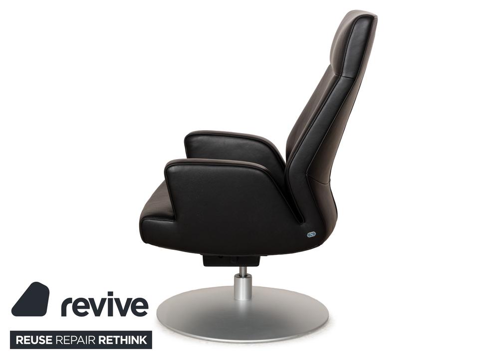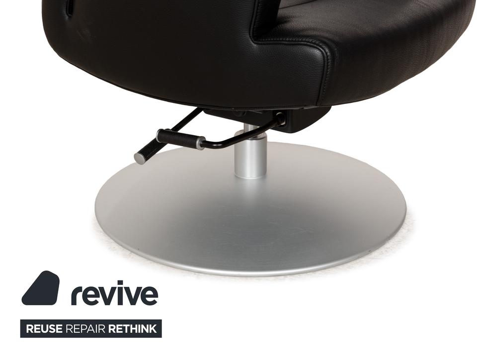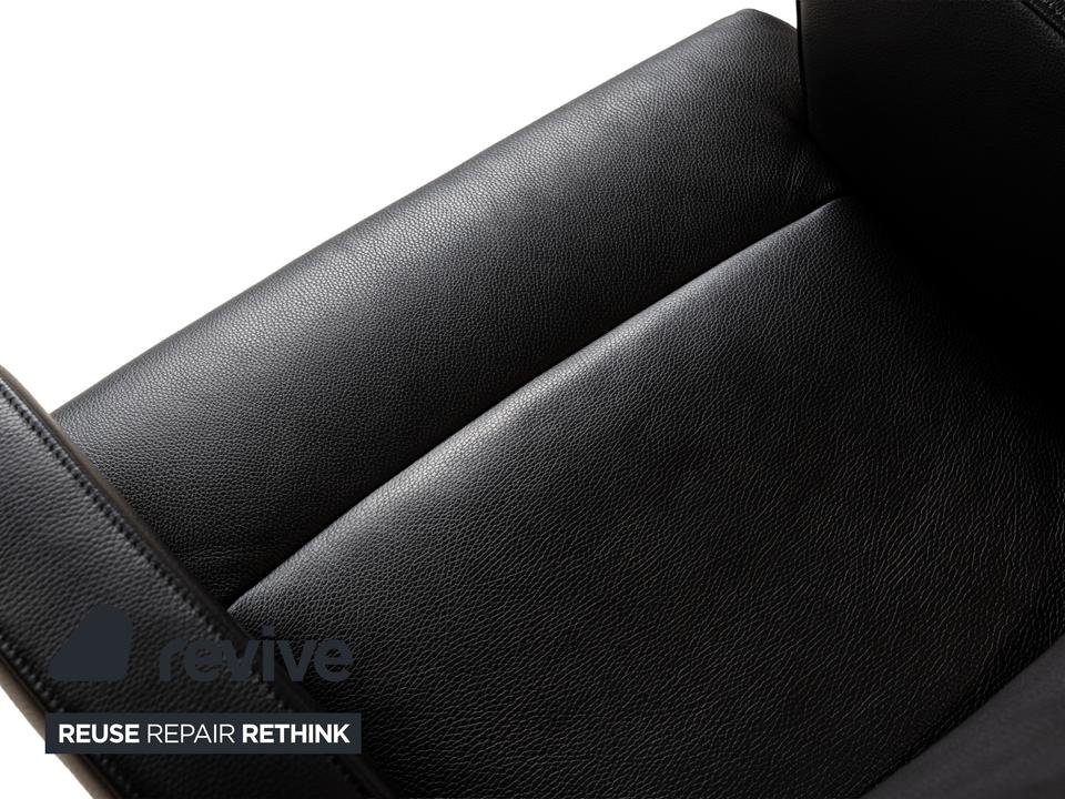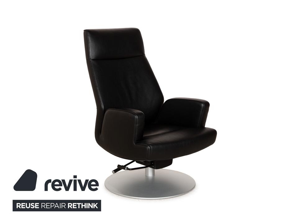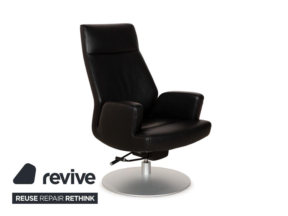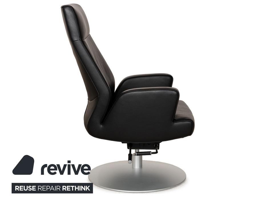 Der Sessel DS-256 von de Sede ist mit schwarzem Leder bezogen und steht auf einem silbernen Metallteller. Er kann in der Höhe verstellt und leicht nach hinten gekippt werden. Die Materialien Metall und Leder gehen hier mit ihren kühlen Farbtönen eine elegante Verbindung ein, die sich optisch leicht mit weiteren Einrichtungsgegenständen kombinieren lässt. Der Hersteller ist bekannt für seine exzellente Verarbeitung, so dass mit diesem Sessel formschönes Handwerk nach Hause kommt. Die Sitzhöhe lässt sich über eine Gadruckfeder verstellen.Minimale Sitzhöhe: 40 cmMaximale Sitzhöhe: 45 cm
