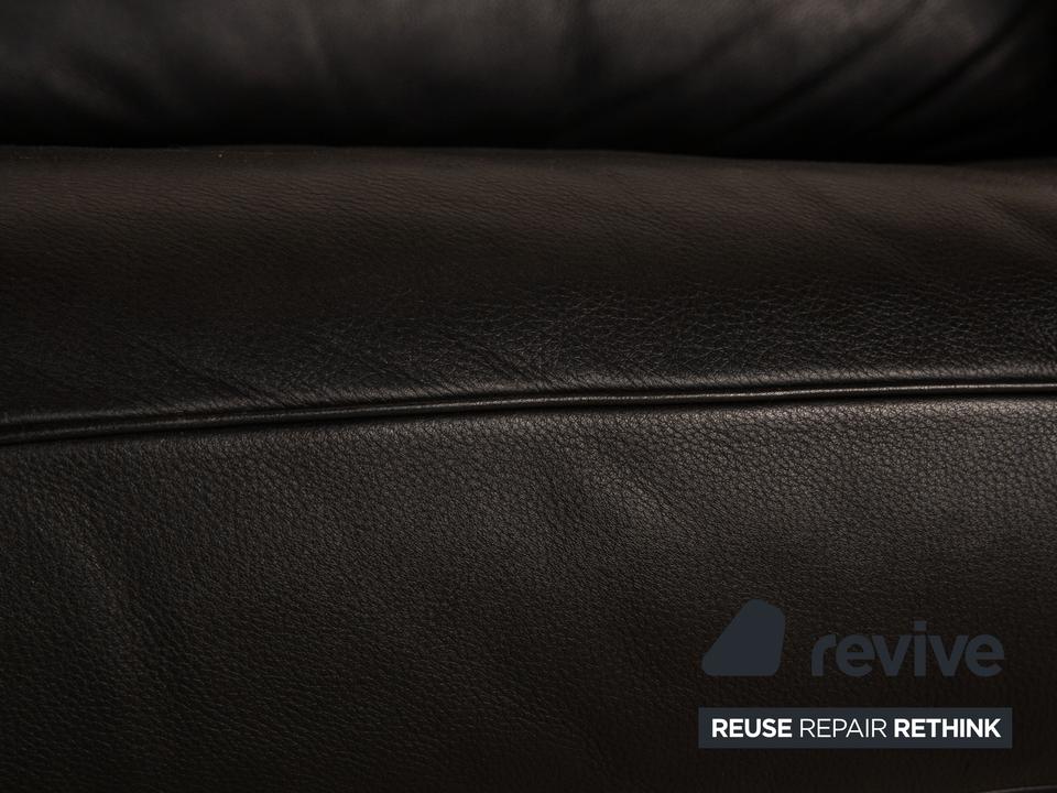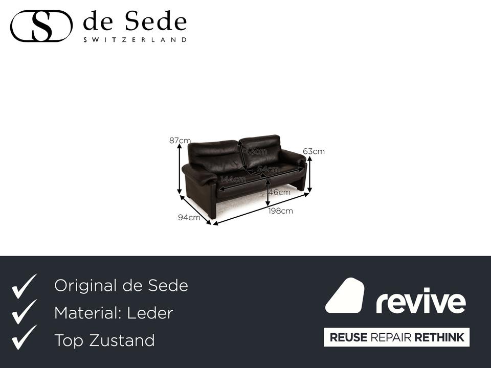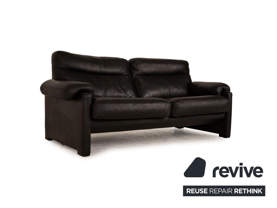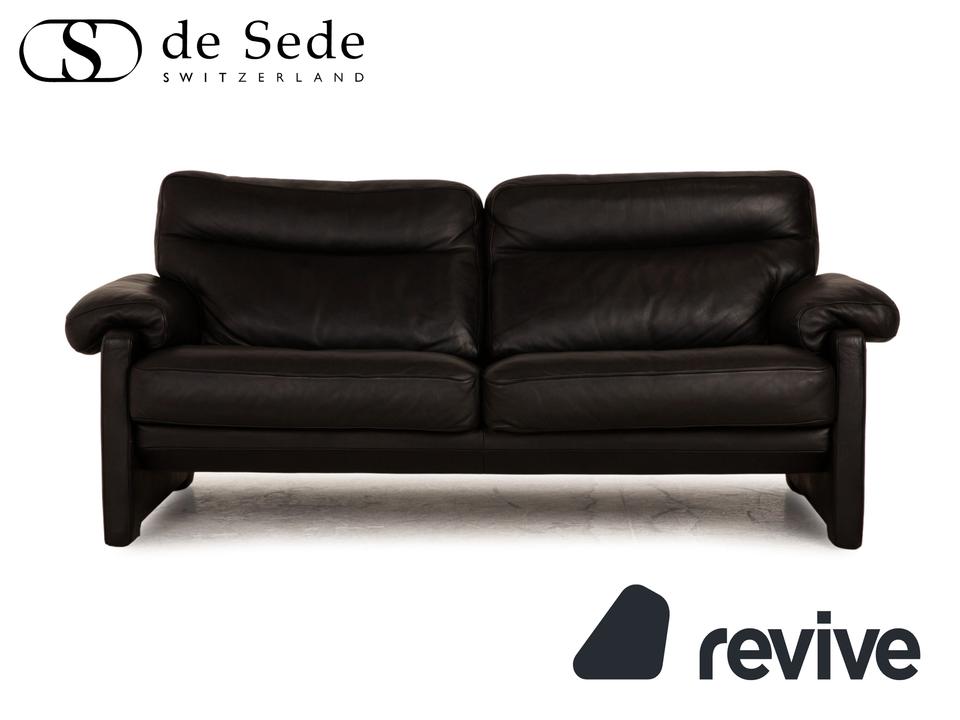 Der Dreisitzer ds 70 von de Sede ist mit einem schwarzen Echtleder bezogen und steht auf massiven Füßen. Er zeichnet sich durch das klassische Design und die zeitlose, schlichte Optik aus.