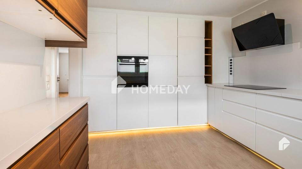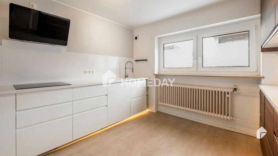 Die Immobilie hat eine Größe von ca. 115,77 Quadratmetern Wohnfläche, die sich auf sechs Zimmer und drei Etagen verteilt. Im Vollkeller befindet sich ein Partykeller. Durch einen Flurbereich mit guten Stellmöglichkeiten erreichen Sie das Herzstück des Hauses, den Wohn- und Essbereich mit Kamin. Großzügig bemessen gibt es in dieser Etage genügend Raum für eine ausgedehnte Wohnlandschaft sowie einen Essbereich. Die beeindruckende und moderne Küche ist mit hochwertigen Einbaugeräten ausgestattet und ein Highlight für jeden Hobbykoch. In der Küche befindet sich ein eleganter Induktionsherd, der eine präzise und schnelle Erhitzung ermöglicht. Mit seiner glatten Oberfläche ist er nicht nur ästhetisch ansprechend, sondern auch leicht zu reinigen. Ein Geschirrspüler und eine Dunstabzugshaube sind ebenfalls Bestandteil der Küchenausstattung. Zusätzlich verfügt das Erdgeschoss über ein praktisches Gäste-WC.