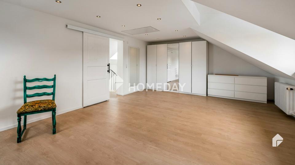 Über die Treppe gelangen Sie vom Erdgeschoss bis in das Dachgeschoss der Immobilie. Das Obergeschoss überzeugt durch eine großzügige Aufteilung und eine perfekt durchdachte Raumnutzung. Drei Schlafzimmer, eine Loggia und ein Badezimmer mit ebenerdiger Regendusche und ganz viel Tageslicht sowie einem Waschtisch mit Unterschrank befinden sich hier. Im Dachgeschoss finden Sie zwei weitere traumhafte, sonnendurchflutete Zimmer, die mit Deckenspots ausgestattet sind.