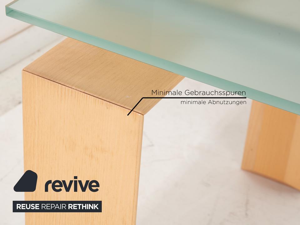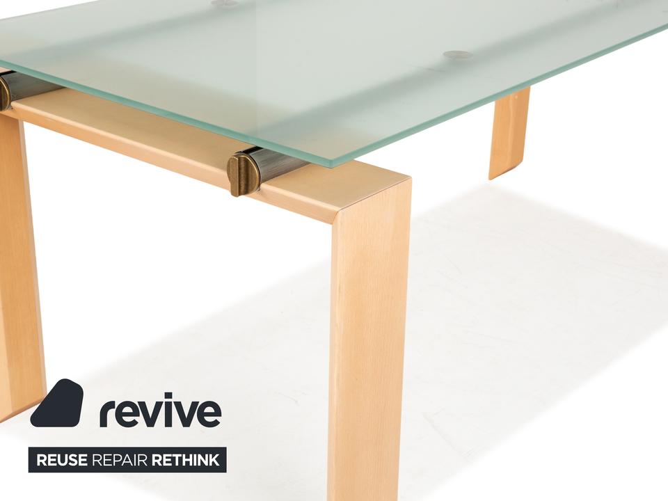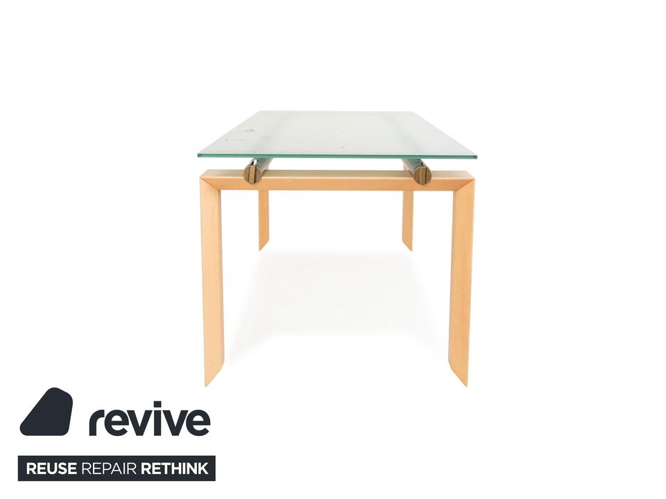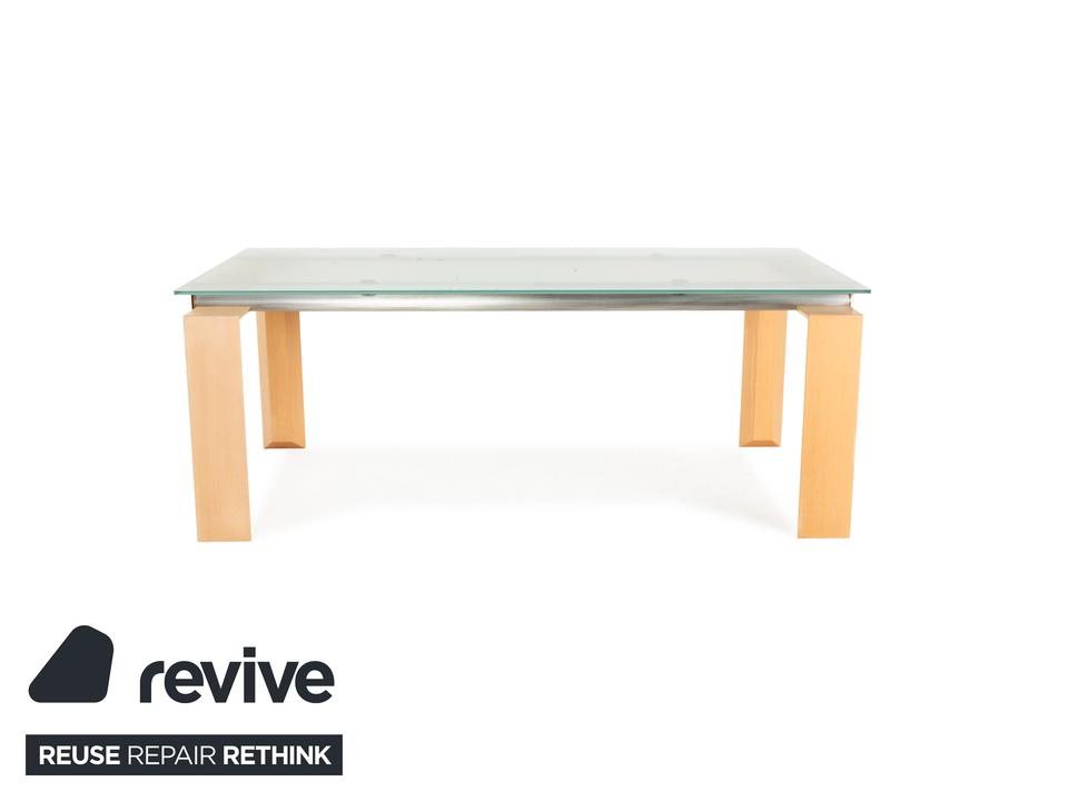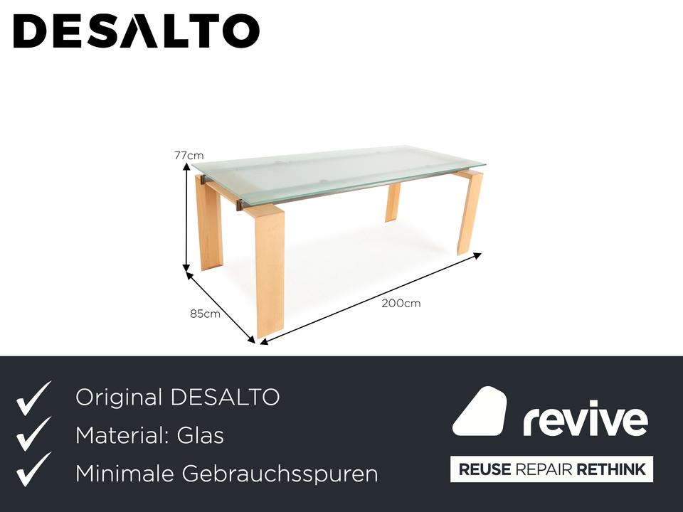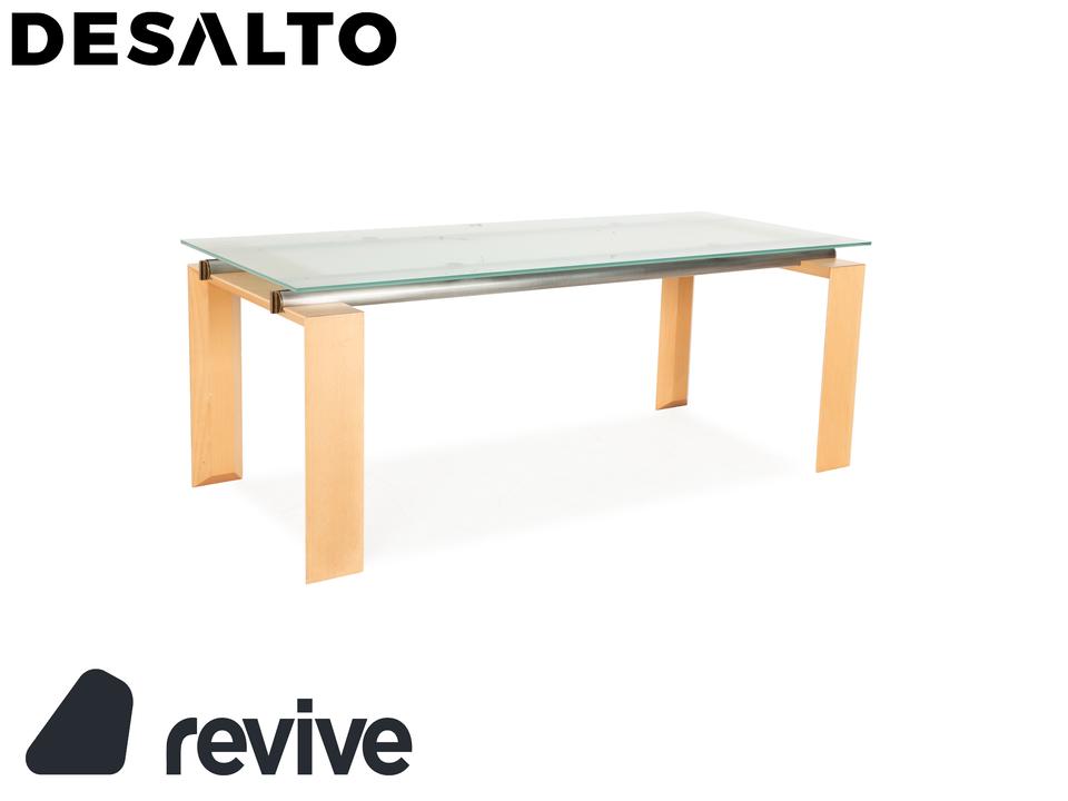 Der Esstisch Stilt von DESALTO besteht aus einer Glasplatte und steht auf einem Holzgestell. Er zeichnet sich durch das klassische Design und die schlichte Optik aus.