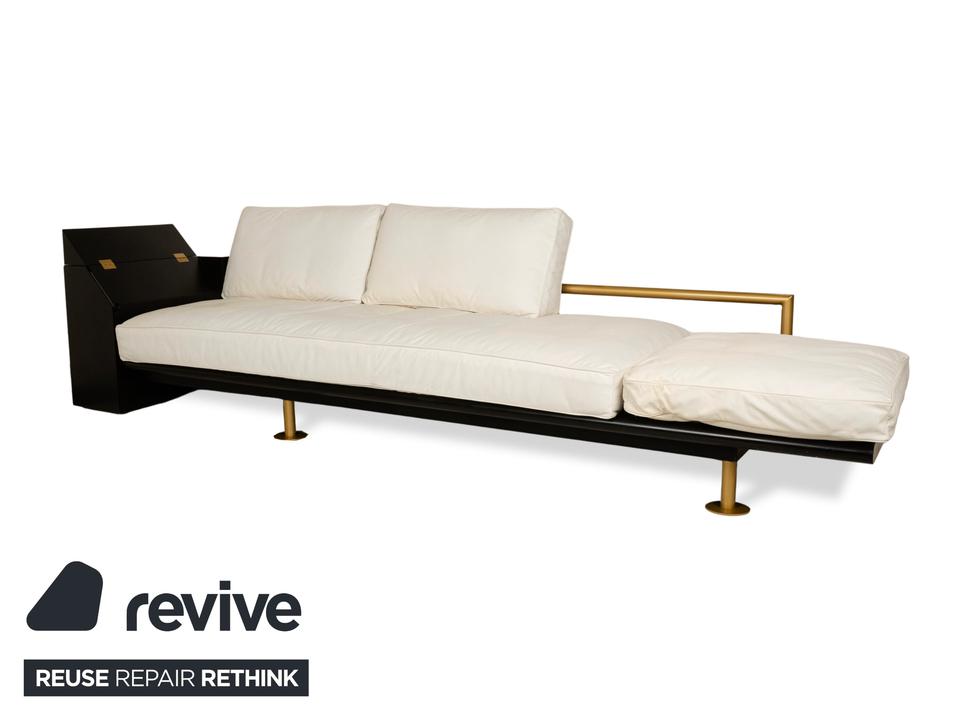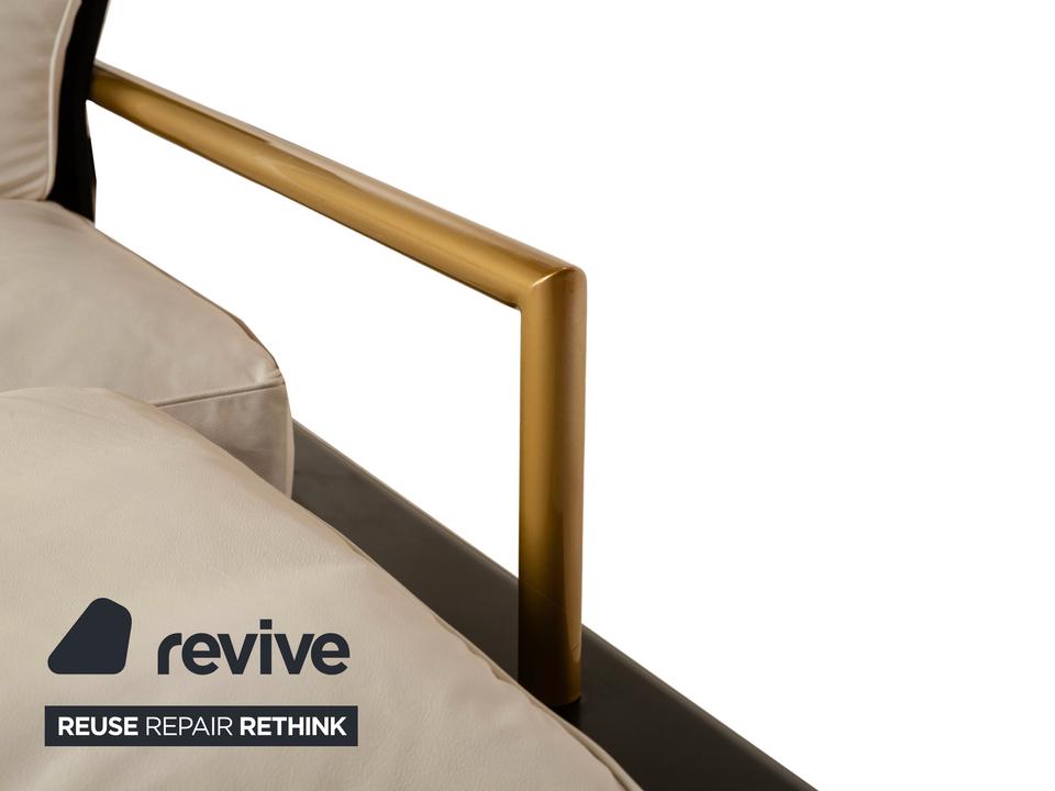 Die Draenert Liege ist gefertigt aus hochwertigem Leder, welches ultimativen Komfort bietet. Zudem sorgt die Kombination aus dunklen und hellen Farbtönen für ein edles und stilvolles Auftreten, welches durch das goldene Gestell maximiert wird.