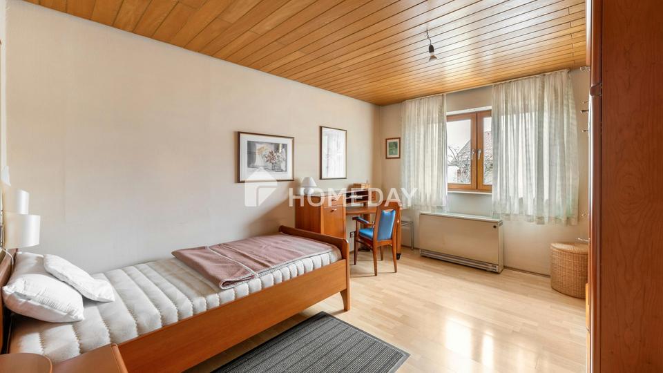 Die Küche liegt separat und ist funktional geschnitten. Kurze Wege zwischen Kochen, Essen und Wohnen erleichtern den Alltag. Zwei weitere Zimmer auf dieser Ebene eignen sich ideal als Kinderzimmer, Gästezimmer oder Büro. Das Tageslichtbad mit Dusche und Badewanne ergänzt das Raumangebot im Erdgeschoss sinnvoll.%BREAK%