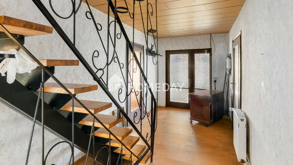 Wichtige Modernisierungen wurden bereits umgesetzt: Das Dach wurde 2010 saniert, die wärmeisolierten Kunststofffenster mit Doppelverglasung stammen aus dem Jahr 1994, und die Gaszentralheizung wurde erst 2023 erneuert. Insgesamt befindet sich das Haus jedoch in einem renovierungsbedürftigen Zustand und bietet daher besonders Käufern mit handwerklichem Geschick oder Freude am Sanieren eine interessante Gelegenheit. Ergänzt wird das Haus durch einen Gewölbekeller und einen ausbaufähigen Dachboden.