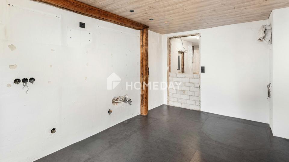Das im Jahr 1910 errichtete Haus erzählt Geschichte und eröffnet zugleich vielfältige Möglichkeiten für eine umfassende Neugestaltung. Die Immobilie befindet sich in einem sanierungsbedürftigen Zustand und eignet sich ideal für Käufer, die den Charme eines Altbaus schätzen und ihre eigenen Wohnvorstellungen im Rahmen einer Kernsanierung verwirklichen möchten. Bereits erneuerte Fenster mit Außenrollläden bilden dafür eine solide Grundlage.