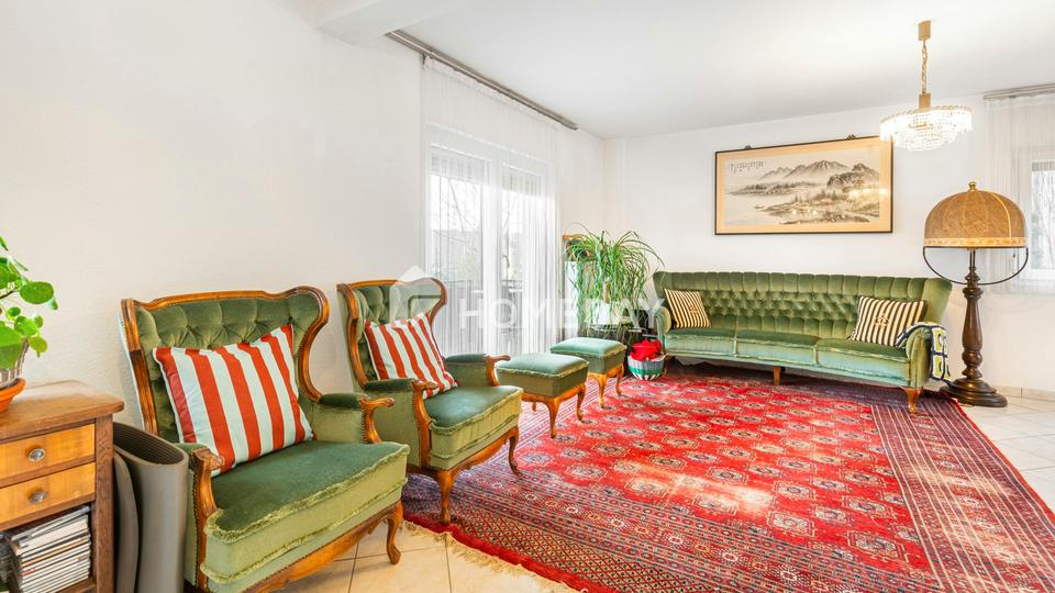 Dieses ursprünglich im Jahr 1962 errichtete Einfamilienhaus präsentiert sich in einem äußerst gepflegten und modernisierten Zustand. Mit einer Wohnfläche von ca. 168 Quadratmeter, verteilt auf insgesamt sieben Zimmer und zwei Wohneinheiten, bietet das Objekt ideale Bedingungen für Familien, Mehrgenerationenwohnen oder die Kombination aus Wohnen und Arbeiten unter einem Dach. Ergänzt wird das Raumangebot durch eine rund 30 Quadratmeter große Gewerbefläche im Kellergeschoss, die derzeit als Büro genutzt wird – perfekt für Selbstständige oder für flexible Nutzungskonzepte.