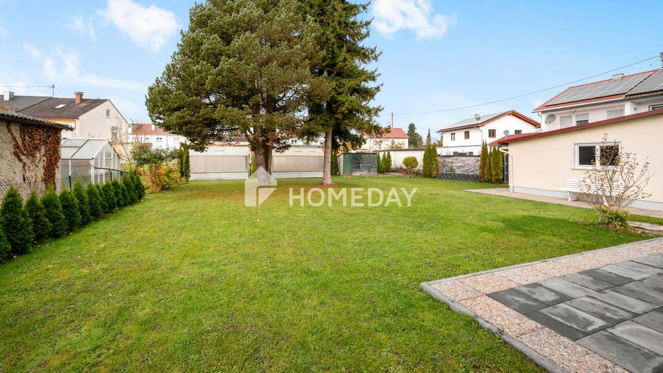 Bereits die Außenansicht überzeugt mit einer klassischen, zeitlosen Architektur und einer gepflegten Einfriedung. Der großzügige Garten mit altem Baumbestand, weitläufigem Rasen und einem Terrassenbereich schafft ideale Bedingungen für entspannte Stunden im Freien oder gesellige Familienfeste. Für Fahrzeuge steht eine Garage zur Verfügung, die direkt an das Grundstück angrenzt. Zudem befindet sich vor der Garage Platz für zwei weitere Fahrzeuge.