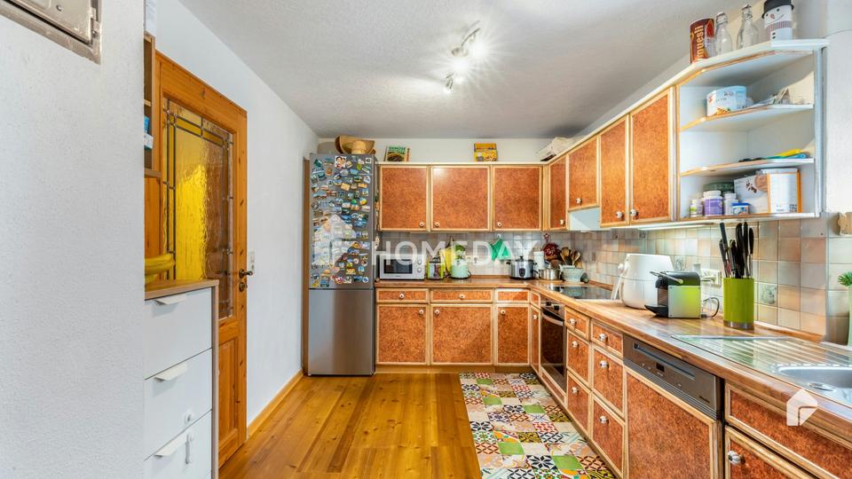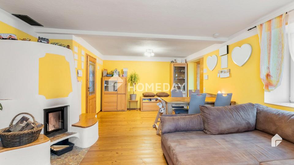• Eine Ölzentralheizung aus dem Jahr 2009 versorgt das Haus über Flachheizkörper mit Wärme. Die letzte Heizungssanierung erfolgte 2021. Ferner besitzt der Kaminofen eine Wassertasche für die zusätzliche Beheizung.